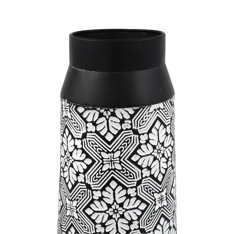 ΜΕΤΑΛΛΙΚΟ ΒΑΖΟ ΔΑΠΕΔΟΥ Fylliana FL8 ΜΑΥΡΟ-ΑΣΠΡΟ ΧΡΩΜΑ 18x51εκ