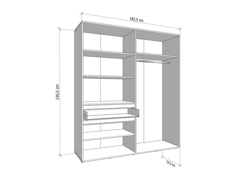 Στο εσωτερικό της, η τετράφυλλη ντουλάπα CORBETT περιλαμβάνει στο δεξί της τμήμα ένα ράφι στο επάνω μέρος και μία ράγα κρέμασης ώστε να τοποθετήσετε όλα σας τα πανωφόρια με άνεση καθώς διαθέτει άπλετο χώρο σας πλάτος και ύψος. Στο αριστερό της τμήμα υπάρχουν δύο αποθηκευτικοί χώροι με τρία ράφια στο εσωτερικό τους ενώ στο κέντρο τους υπάρχει και ένα συρτάρι για να έχετε αποθηκευμένα τα προσωπικά σας αντικείμενα.