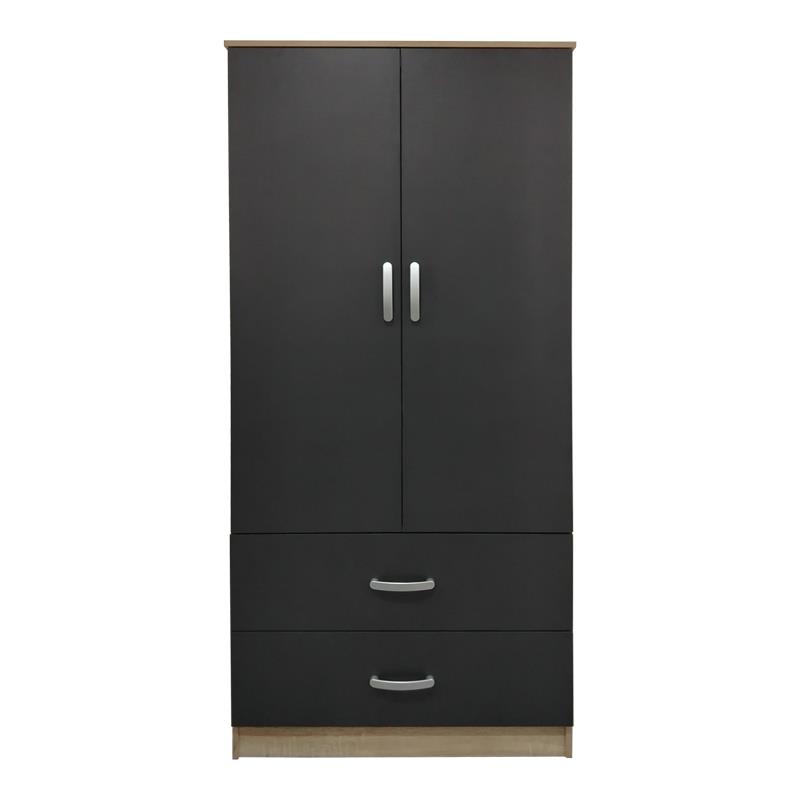 - Περιλαμβάνει δύο πόρτες, εσωτερικά φέρει ράγα για κρεμάστρες ενώ κάτω φέρει δύο μεγάλα συρτάρια για την αποθήκευση ρούχων και αξεσουάρ.