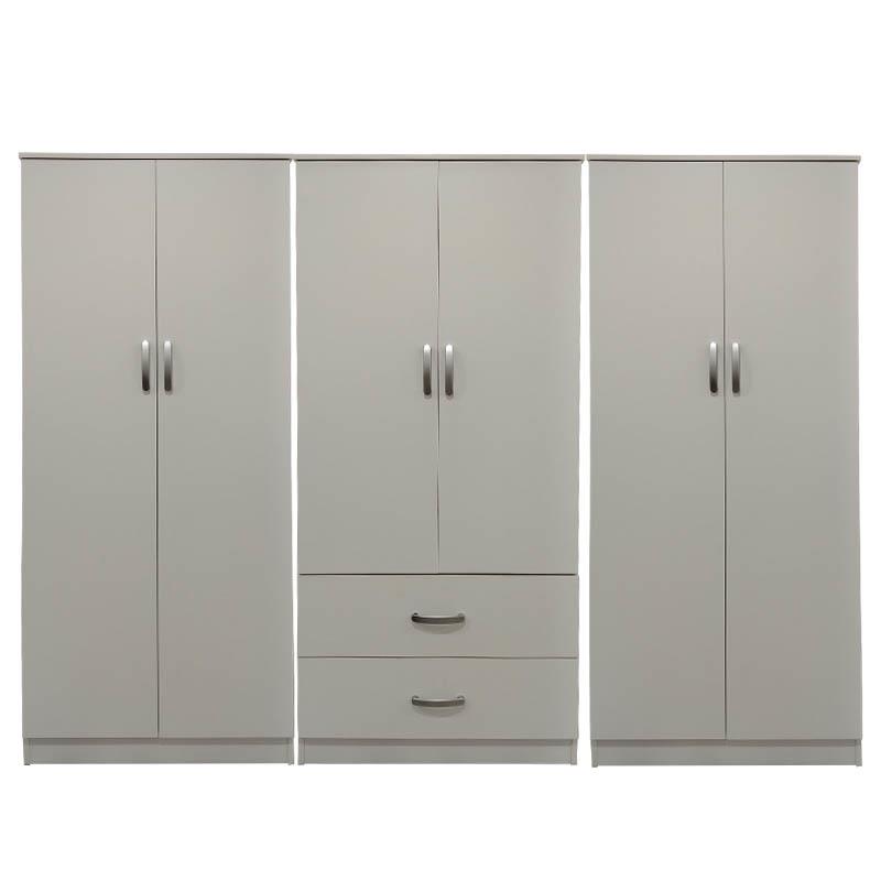 • Περιλαμβάνει εξι πόρτες, εσωτερικά φέρει ράγα για κρεμάστρες ενώ κάτω φέρει δύο μεγάλα συρτάρια για την αποθήκευση ρούχων και αξεσουάρ.