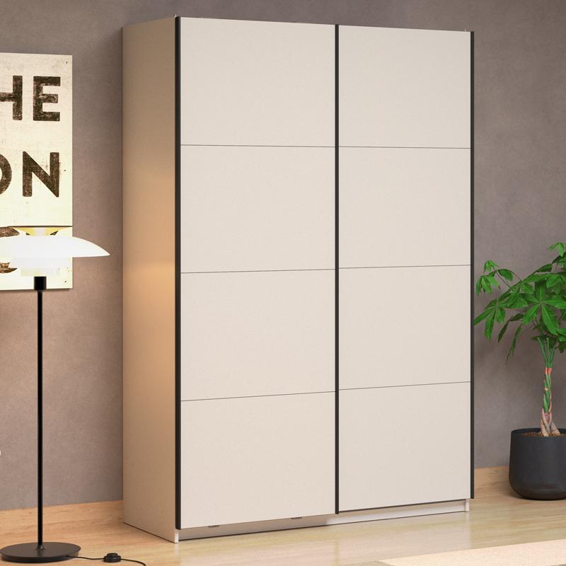 Είναι κατασκευασμένη από υψηλής ποιότητα υλικά, με πιστοποιημένη μελαμίνη ευρωπαϊκής προέλευσης και MDF επικάλυψη στην πρόσοψή της, σε ιδιαίτερη cashmere απόχρωση, η οποία προσφέρει διακριτική πολυτέλεια και φωτεινότητα στο χώρο σε συνδυασμό με τα μαύρο ματ μεταλλικά χερούλια που διαθέτει. Η δίφυλλη συρόμενη ντουλάπα Gard 150 συνδυάζει το στυλ και την οργάνωση σε ένα, καθώς ακολουθεί την τελευταία λέξη της μόδας του design.