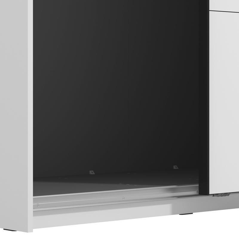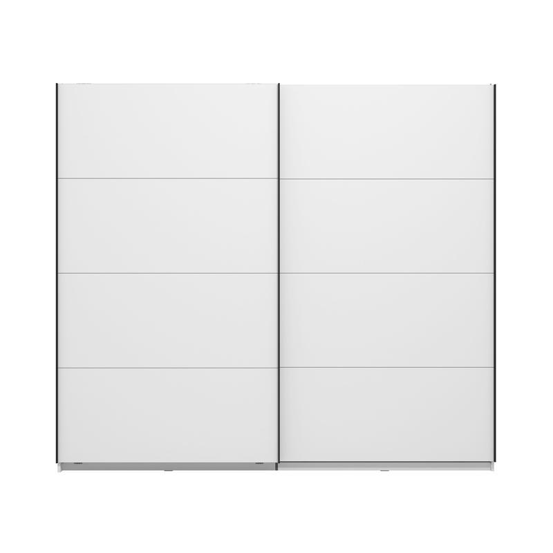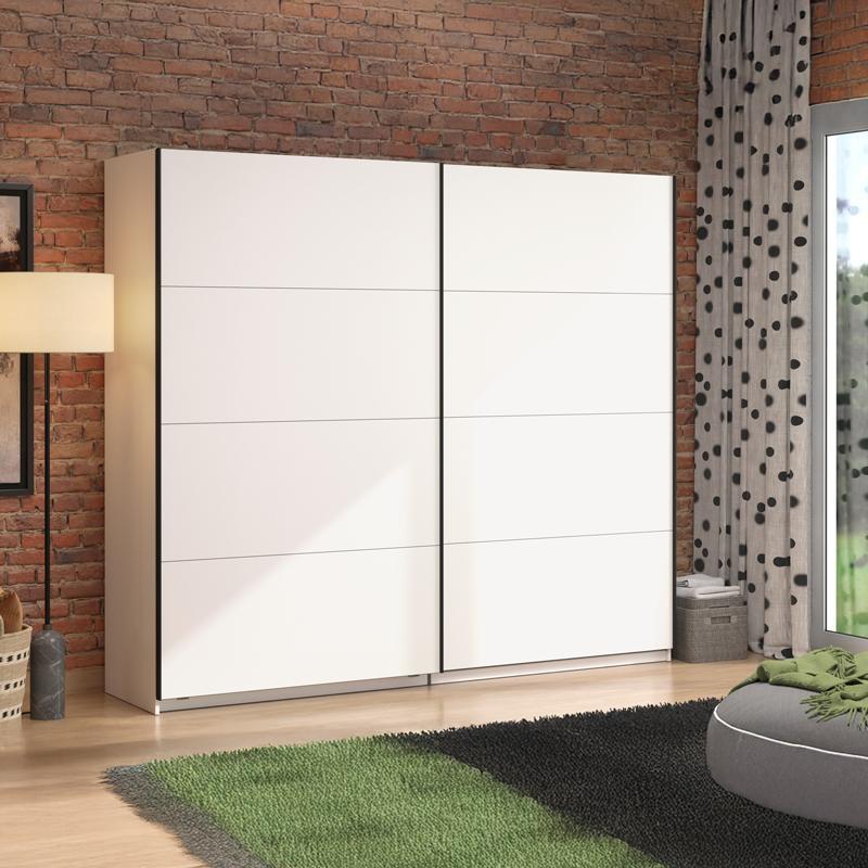 Είναι κατασκευασμένη από υψηλής ποιότητας υλικά, με πιστοποιημένη μελαμίνη ευρωπαϊκής προέλευσης και MDF επικάλυψη στην πρόσοψή της, σε ιδιαίτερη Opaque White απόχρωση, η οποία προσφέρει διακριτική πολυτέλεια και φωτεινότητα στο χώρο σε συνδυασμό με τη μαύρη ματ μεταλλική χειρολαβή που διαθέτει. Η δίφυλλη συρόμενη ντουλάπα Gard 245 συνδυάζει το στυλ και την οργάνωση σε ένα, καθώς ακολουθεί την τελευταία λέξη της μόδας του design.
