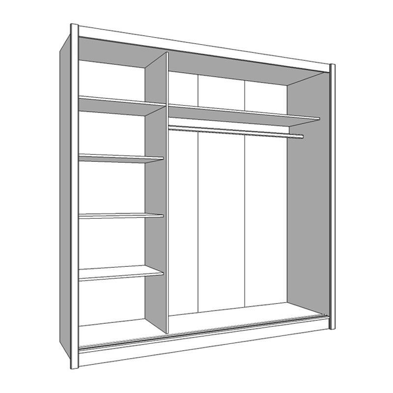 Η συρόμενη ντουλάπα υπνοδωματίου Navara 215 της συλλογής μας είναι η απόλυτη λύση για εκείνους που επιθυμούν έναν συνδυασμό κομψότητας, μοντέρνας αισθητικής και πρακτικότητας. Σχεδιασμένη για να προσφέρει άφθονο χώρο αποθήκευσης χωρίς να καταλαμβάνει υπερβολικό χώρο στο δωμάτιο, η δίφυλλη συρόμενη ντουλάπα Navara 215 είναι χωρισμένη σε 2 τμήμα, όπου στο δεξί φύλλο διαθέτει μία ράγα κρέμασης για τα ρούχα και τα πανωφόρια και ένα πατάρι στο επάνω μέρος, ενώ στο αριστερό τμήμα της διαθέτει 4 ράφια δημιουργώντας 5 αποθηκευτικούς χώρους για να αποθηκεύετε όλα τα κλινοσκεπάσματα, ρούχα και τα υπόλοιπα προσωπικά σας αντικείμενα.