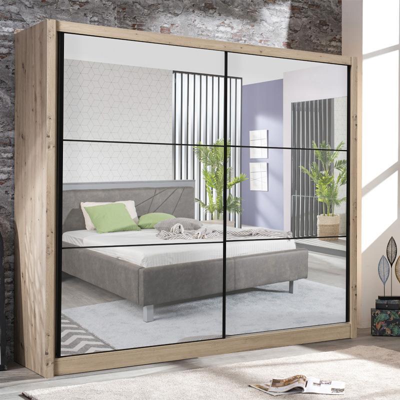 Το μοναδικό χαρακτηριστικό της ντουλάπας Navara είναι οι 2 καθρέφτες που διαθέτει και στα 2 φύλλα της, οι οποίοι όχι μόνο ενισχύουν την αισθητική του χώρου, αλλά δίνουν και βάθος και φωτεινότητα σε όποιο δωμάτιο στηθούν.
