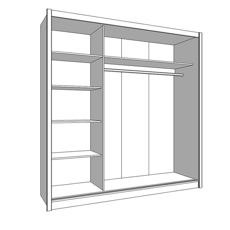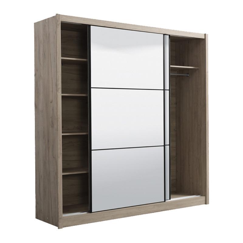 Η συρόμενη ντουλάπα υπνοδωματίου Navara 215 με 2 Καθρέπτες είναι η απόλυτη επιλογή για όσους αναζητούν έναν συνδυασμό μοντέρνας αισθητικής και εξαιρετικής λειτουργικότητας. Σχεδιασμένη με σκοπό να προσφέρει έναν εντυπωσιακό αποθηκευτικό χώρο αλλά και εμφάνιση, η δίφυλλη συρόμενη ντουλάπα Navara 215 θα ενσωματωθεί εύκολα σε οποιοδήποτε δωμάτιο του σπιτιού και θα σας προσφέρει πολλές λύσεις αποθήκευσης, καθώς χωρίζεται σε 2 τμήματα όπου αριστερά θα βρείτε 4 ράφια τα οποία δημιουργούν 5 μεγάλους αποθηκευτικούς χώρους για να αποθηκεύετε όλα τα κλινοσκεπάσματα, ρούχα και τα υπόλοιπα προσωπικά σας αντικείμενα, ενώ στο δεξί της τμήμα θα βρείτε ένα μεγάλο χώρο με μία μεταλλική ράγα κρέμασης για τα ρούχα και τα πανωφόρια σας και ένα πατάρι στο επάνω μέρος.