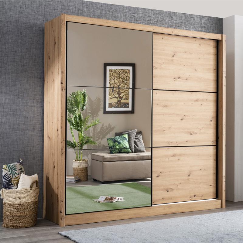Η συρόμενη ντουλάπα υπνοδωματίου Navara 215 με Καθρέπτη είναι η απόλυτη επιλογή για όσους αναζητούν έναν συνδυασμό μοντέρνας αισθητικής και εξαιρετικής λειτουργικότητας. Σχεδιασμένη με σκοπό να προσφέρει έναν εντυπωσιακό αποθηκευτικό χώρο, η δίφυλλη συρόμενη ντουλάπα Navara 215 θα ενσωματωθεί εύκολα σε οποιοδήποτε δωμάτιο του σπιτιού και θα σας προσφέρει πολλές λύσεις αποθήκευσης, καθώς χωρίζεται σε 2 τμήματα όπου αριστερά θα βρείτε 4 ράφια τα οποία δημιουργούν 5 μεγάλους αποθηκευτικούς χώρους για να αποθηκεύετε όλα τα κλινοσκεπάσματα, ρούχα και τα υπόλοιπα προσωπικά σας αντικείμενα, ενώ στο δεξί της τμήμα θα βρείτε ένα μεγάλο χώρο με μία μεταλλική ράγα κρέμασης για τα ρούχα και τα πανωφόρια σας και ένα πατάρι στο επάνω μέρος.