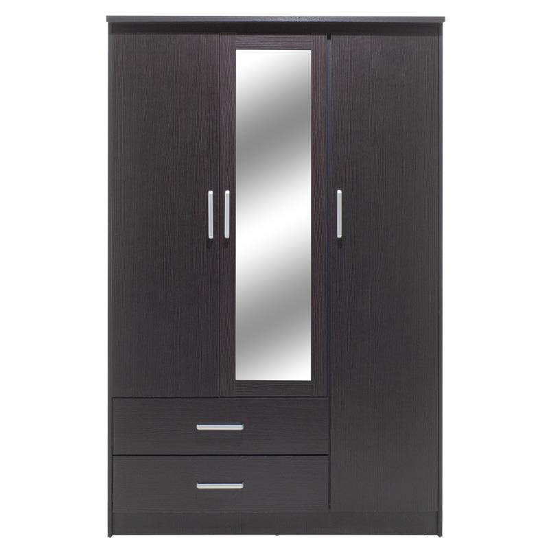 Τρίφυλλη ντουλάπα Olympus με καθρέφτη και δύο συρτάρια σε χρώμα wenge