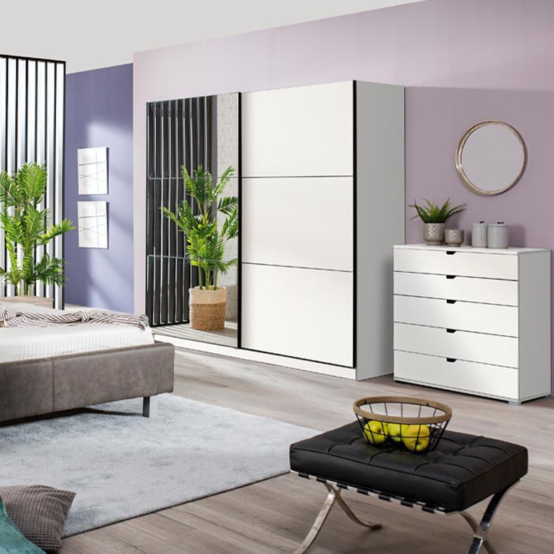 Ο λευκός χρωματισμός της δίφυλλης συρόμενης ντουλάπας SIERRA, δημιουργεί μια αίσθηση καθαρότητας και ζεστασιάς, ενώ το ιδιαίτερο στοιχείο της, ο ολόσωμος καθρέπτης που βρίσκεται στο αριστερό της φύλλο προσδίδει βάθος και φωτεινότητα στο χώρο.