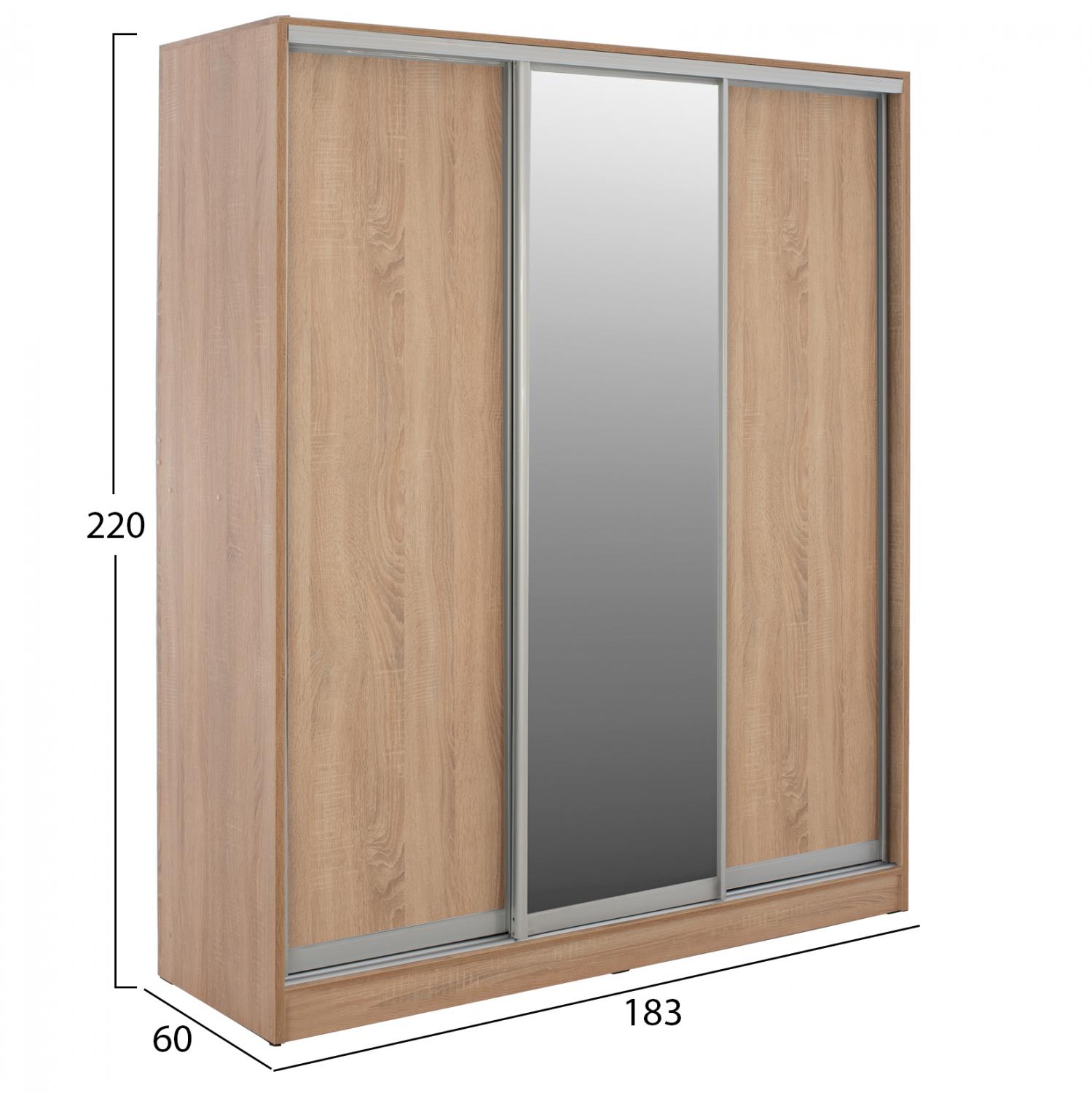 Ντουλάπα Συρόμενη ADLER Τρίφυλλη με Καθρέπτη Sonama oak 183x60x220Υ εκ.