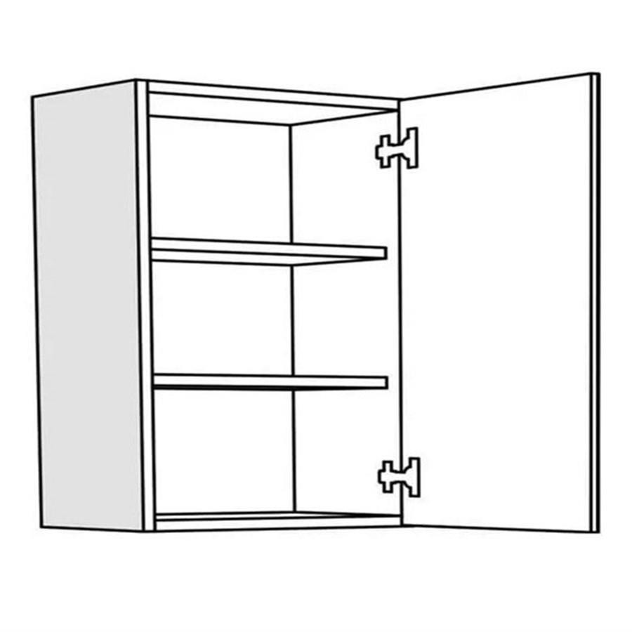 Το ντουλάπι V50 διαθέτει μία πόρτα και δύο εσωτερικά ράφια, τα οποία μπορούν να μετακινηθούν επάνω ή κάτω χάρη στις επιπλέον υποδοχές που διαθέτει, προσφέροντας ευελιξία και καλύτερη οργάνωση του χώρου της κουζίνας σας. Δεν διαθέτει εξωτερικό χερούλι, αλλά σύστημα J-pull χούφτας, σκαμμένο στο ίδιο υλικό MDF της πόρτας. Η επιφάνειά του είναι λεία, απαλή στην αφή και ανθεκτική στα δακτυλικά αποτυπώματα, ενώ το υλικό κατασκευής είναι ανθεκτικό σε γρατζουνιές και χημικά.