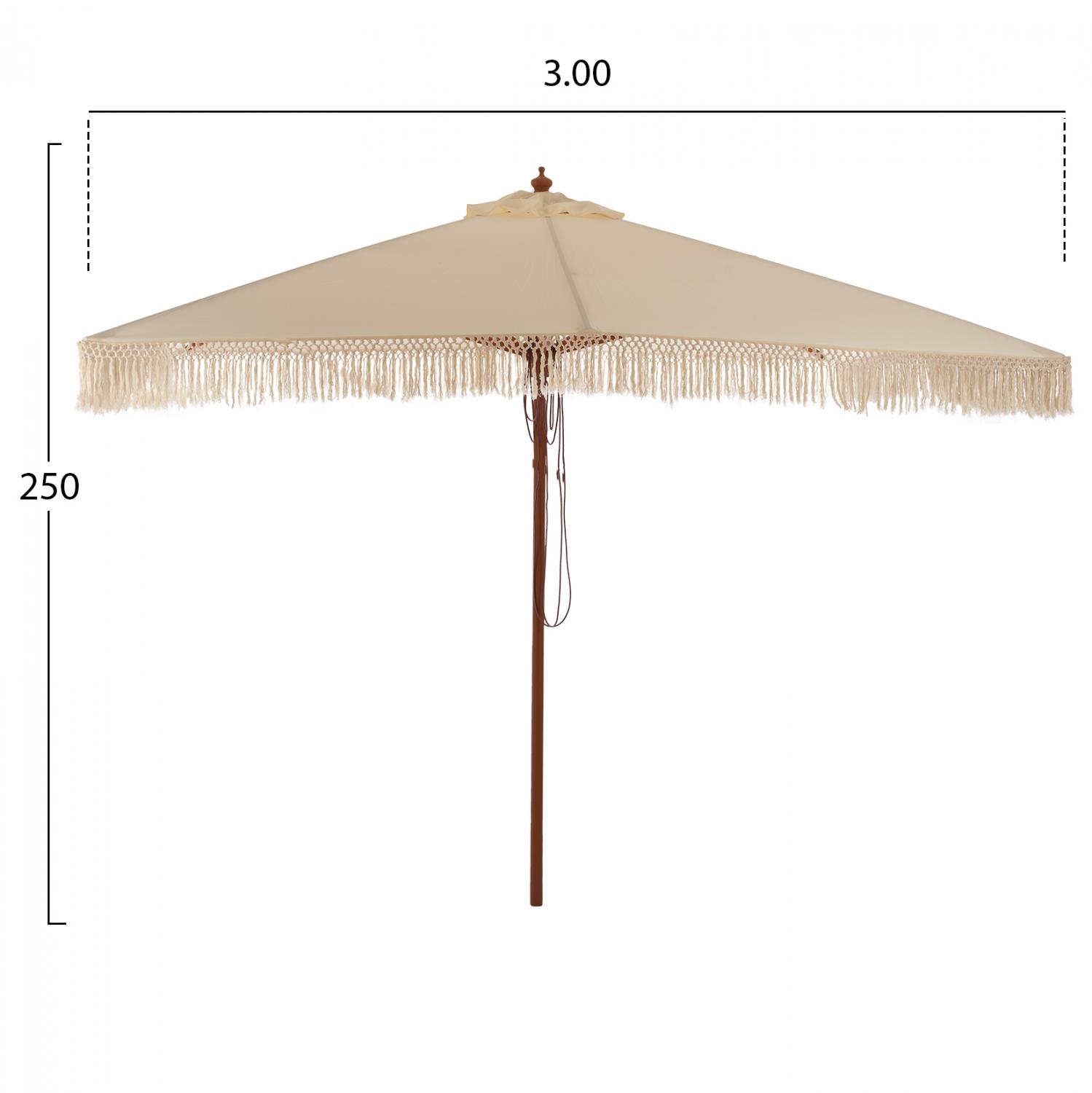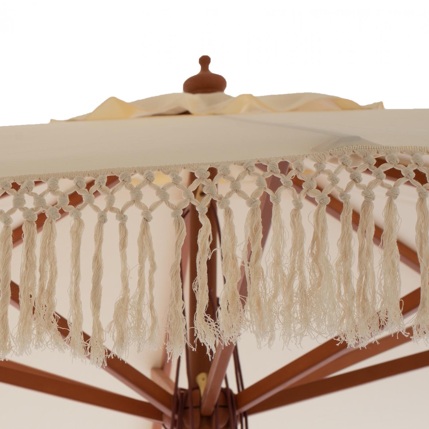 Η ξύλινη ομπρέλα HM5778.01 με μακραμέ κρόσια, είναι μια τέλεια και απαραίτητη επιλογή για τις καλοκαιρινές και ηλιόλουστες μέρες.