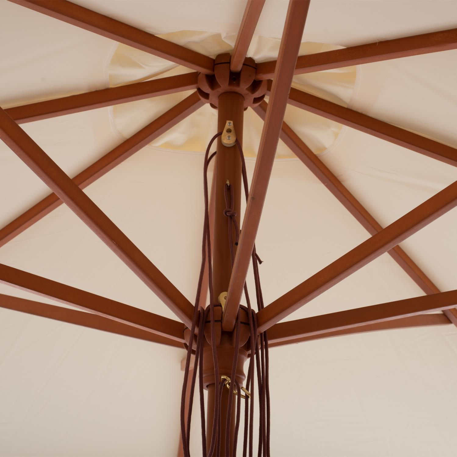 Επαγγελματική ομπρέλα, σε απόχρωση μπεζ με ξύλινο σκελετό.