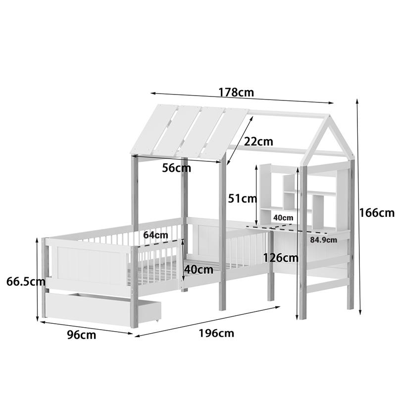 - Φέρει συρτάρι στο κάτω του κρεβατιού που προσφέρει άφθονο κρυφό χώρο για την οργάνωση παιχνιδιών, σεντονιών ή εποχιακών ειδών, διατηρώντας το δωμάτιο τακτοποιημένο.