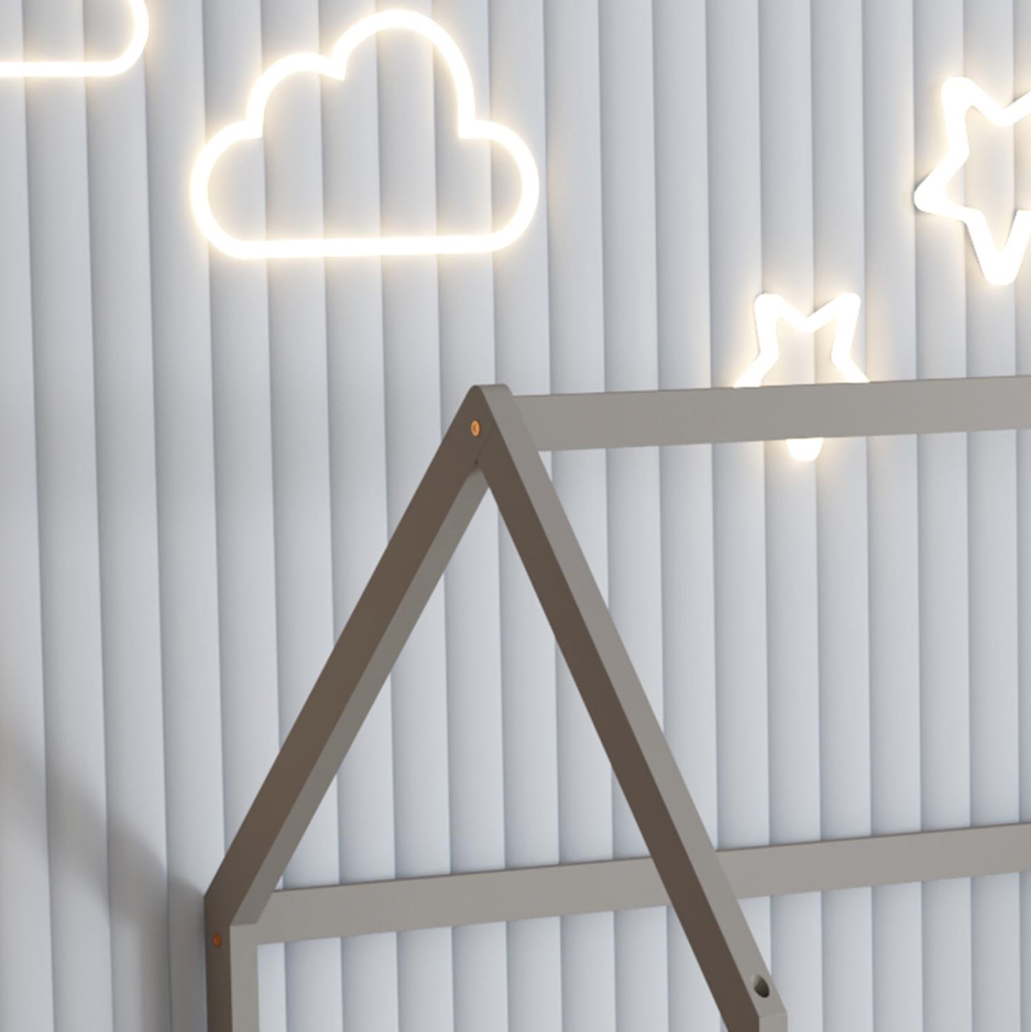 Το παιδικό κρεβάτι PHYLLIS τύπου Montessori σε διάσταση για στρώμα 90x190εκ, είναι κατασκευασμένο από ξύλο πεύκου σε ΓΚΡΙ χρώμα. Όλο το κρεβάτι έχει σχήμα σπιτιού με εξαιρετικά χαμηλά πόδια και περιμετρικά κάγκελα, ενώ το στρώμα τοποθετείται σε τάβλες από κόντρα-πλακέ ξυλεία.