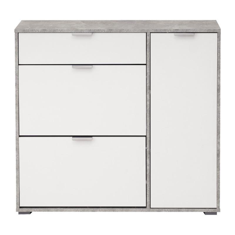 Η παπουτσοθήκη Arco 2 είναι κατασκευασμένη από μοριοσανίδα με πιστοποιημένη επικάλυψη μελαμίνης Ε1, που εξασφαλίζει μακροχρόνια αντοχή και σταθερότητα. Το χρώμα γκρί τσιμέντου με το λευκό προσφέρει μια γήινη και φυσική αισθητική, ιδανική για να συνδυαστεί με άλλους γήινους τόνους και να δημιουργήσει μια αρμονική ατμόσφαιρα στο χώρο σας. Η πλαστική γκρι χειρολαβή προσφέρει εύκολη πρόσβαση στα περιεχόμενα της παπουτσοθήκης και ενισχύει το σύγχρονο design του επίπλου.