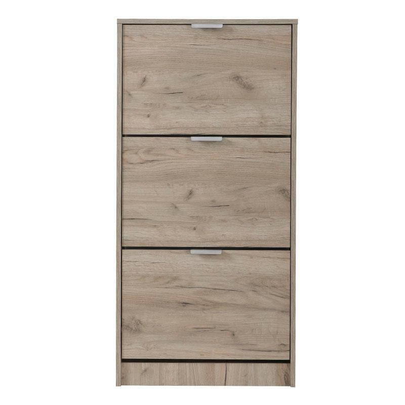 Το χρώμα Grey Oak της παπουτσοθήκης προσφέρει μια φυσική και γήινη αίσθηση στον χώρο σας, και συνδυάζεται εύκολα με άλλες αποχρώσεις και υλικά, δημιουργώντας αρμονία και ζεστασιά. Διαθέτει 3 πόρτες με εσωτερικό χώρο αποθήκευσης και σύστημα αποθήκευσης παπουτσιών για εύκολη και γρήγορη πρόσβαση στα παπούτσια σας και πλαστικές γκρι χειρολαβές.