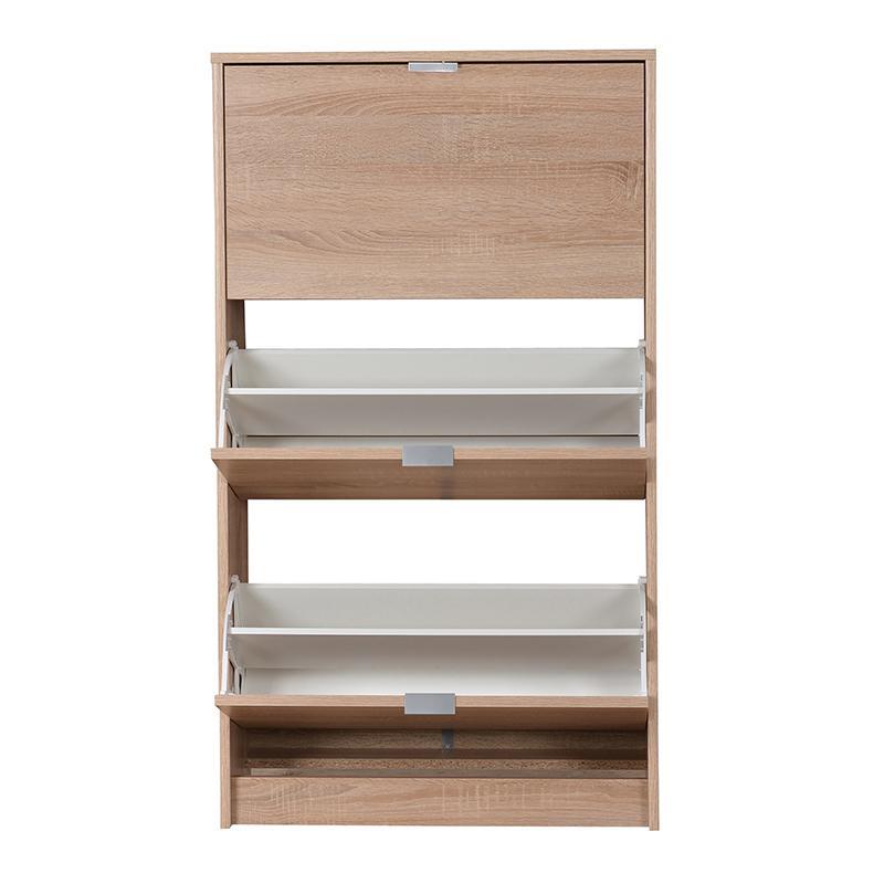 Το χρώμα Σονόμα της παπουτσοθήκης προσφέρει μια φυσική και γήινη αίσθηση στον χώρο σας, και συνδυάζεται εύκολα με άλλες αποχρώσεις και υλικά, δημιουργώντας αρμονία και ζεστασιά. Διαθέτει 3 πόρτες με εσωτερικό χώρο αποθήκευσης και σύστημα αποθήκευσης παπουτσιών για εύκολη και γρήγορη πρόσβαση στα παπούτσια σας και πλαστικές γκρι χειρολαβές.