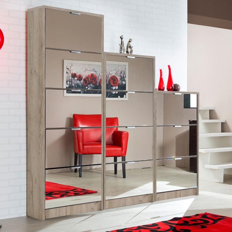 Το χρώμα Σονόμα της παπουτσοθήκης προσφέρει μια φυσική και γήινη αίσθηση στον χώρο σας και σε συνδυασμό με τους καθρέπτες στις πόρτες του προσφέρει μία αίσθηση βάθους και φωτεινότητας στο χώρο σας. Διαθέτει 3 πόρτες με εσωτερικό χώρο αποθήκευσης και σύστημα αποθήκευσης παπουτσιών για εύκολη και γρήγορη πρόσβαση στα παπούτσια σας και πλαστικές γκρι χειρολαβές.
