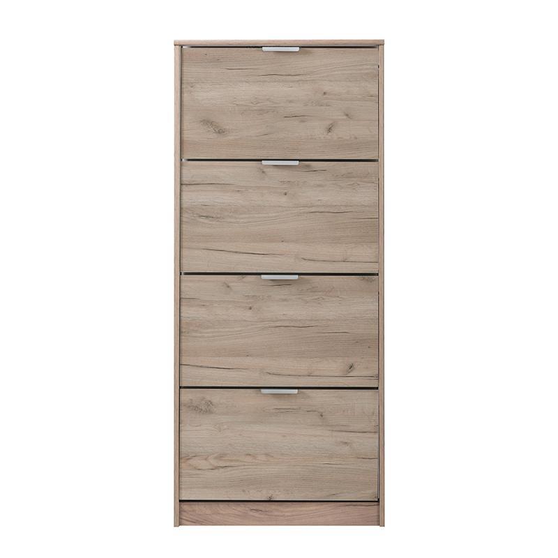 Το χρώμα Γκρί δρύς της παπουτσοθήκης προσφέρει μια φυσική και γήινη αίσθηση στον χώρο σας, και συνδυάζεται εύκολα με άλλες αποχρώσεις και υλικά, δημιουργώντας αρμονία και ζεστασιά. Διαθέτει 4 πόρτες με εσωτερικό χώρο αποθήκευσης και σύστημα αποθήκευσης παπουτσιών για εύκολη και γρήγορη πρόσβαση στα παπούτσια σας και πλαστικές γκρι χειρολαβές.