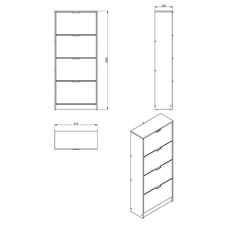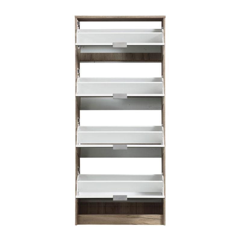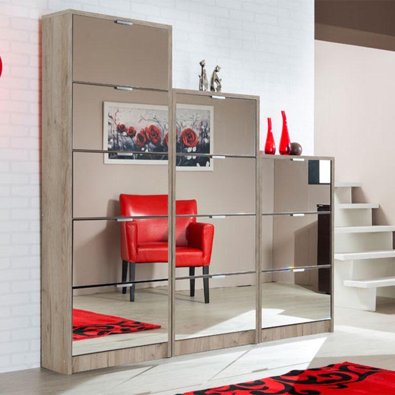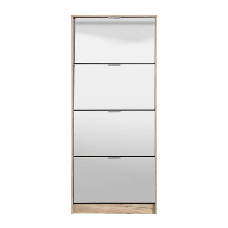 Το χρώμα Γκρί δρύς της παπουτσοθήκης προσφέρει μια φυσική και γήινη αίσθηση στον χώρο σας και σε συνδυασμό με τους καθρέπτες στις πόρτες του προσφέρει μία αίσθηση βάθους και φωτεινότητας στο χώρο σας. Διαθέτει 4 πόρτες με εσωτερικό χώρο αποθήκευσης και σύστημα αποθήκευσης παπουτσιών για εύκολη και γρήγορη πρόσβαση στα παπούτσια σας και πλαστικές γκρι χειρολαβές.