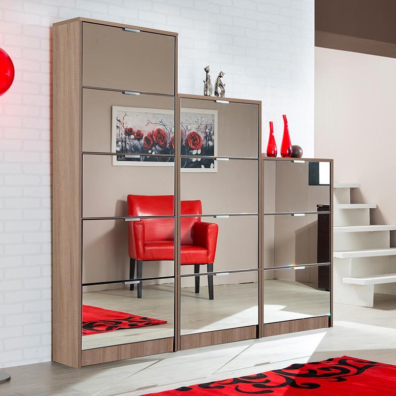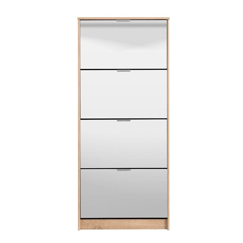 Το χρώμα Σονόμα της παπουτσοθήκης προσφέρει μια φυσική και γήινη αίσθηση στον χώρο σας και σε συνδυασμό με τους καθρέπτες στις πόρτες του προσφέρει μία αίσθηση βάθους και φωτεινότητας στο χώρο σας. Διαθέτει 4 πόρτες με εσωτερικό χώρο αποθήκευσης και σύστημα αποθήκευσης παπουτσιών για εύκολη και γρήγορη πρόσβαση στα παπούτσια σας και πλαστικές γκρι χειρολαβές.