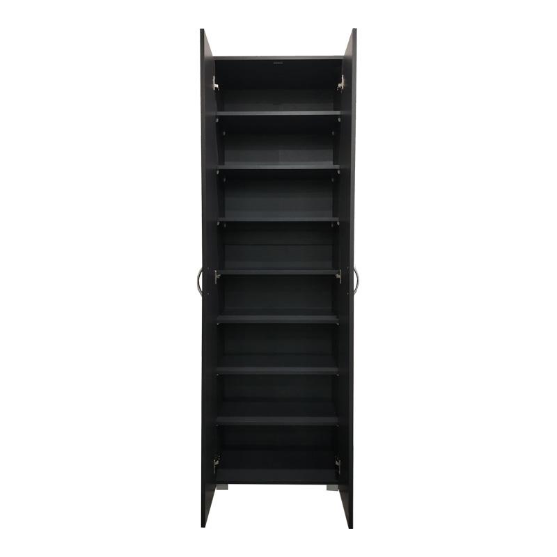 Οι δύο ευρύχωρες πόρτες ανοίγουν για να αποκαλύψουν πολλαπλά ράφια, προσφέροντας άφθονο χώρο για την τακτοποίηση παπουτσιών κάθε είδους και μεγέθους. Η στιβαρή κατασκευή εξασφαλίζει μακροχρόνια αντοχή, ενώ ο διακριτικός σχεδιασμός ταιριάζει άψογα σε κάθε διακόσμηση.