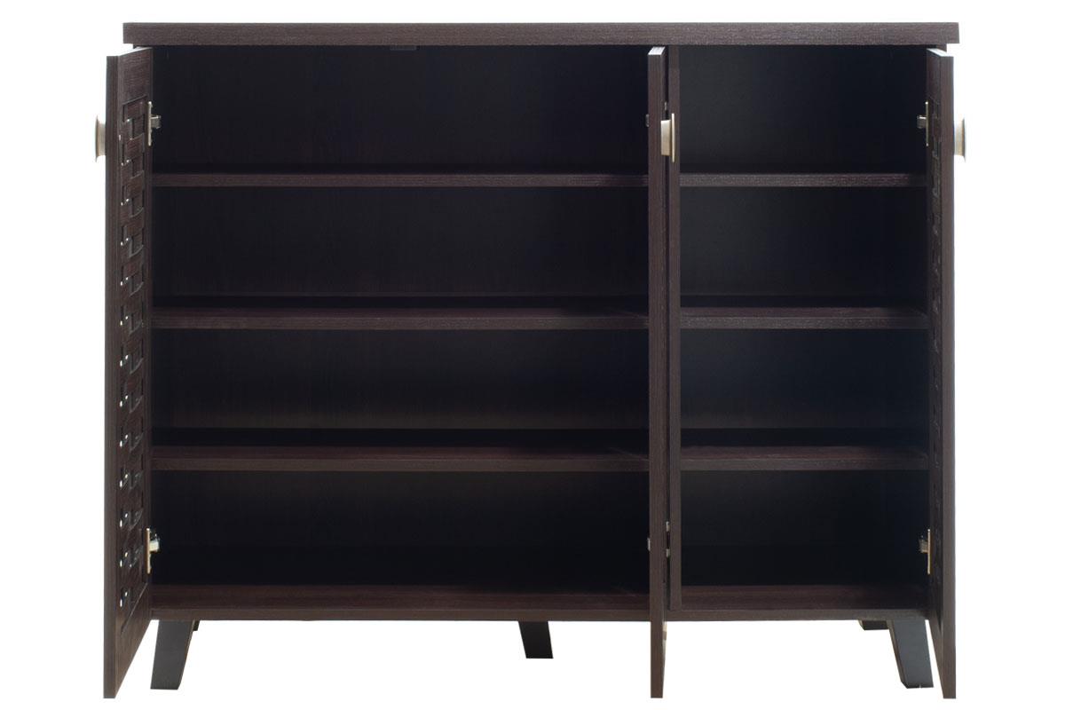 • Περιλαμβάνει τρεις πόρτες σε σχέδιο-μοτίβο πλέγματος, εσωτερικά φέρει έξι ράφια για 16 ζεύγη παπουτσιών, ρούχα ή αξεσουάρ.