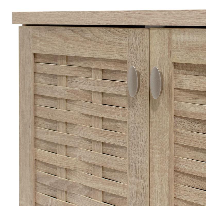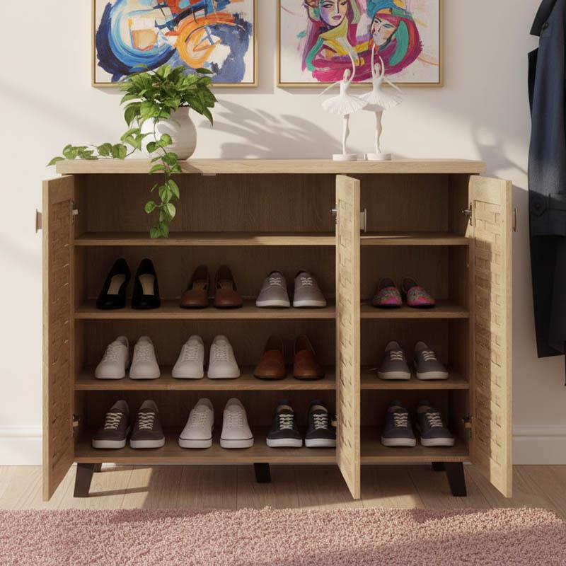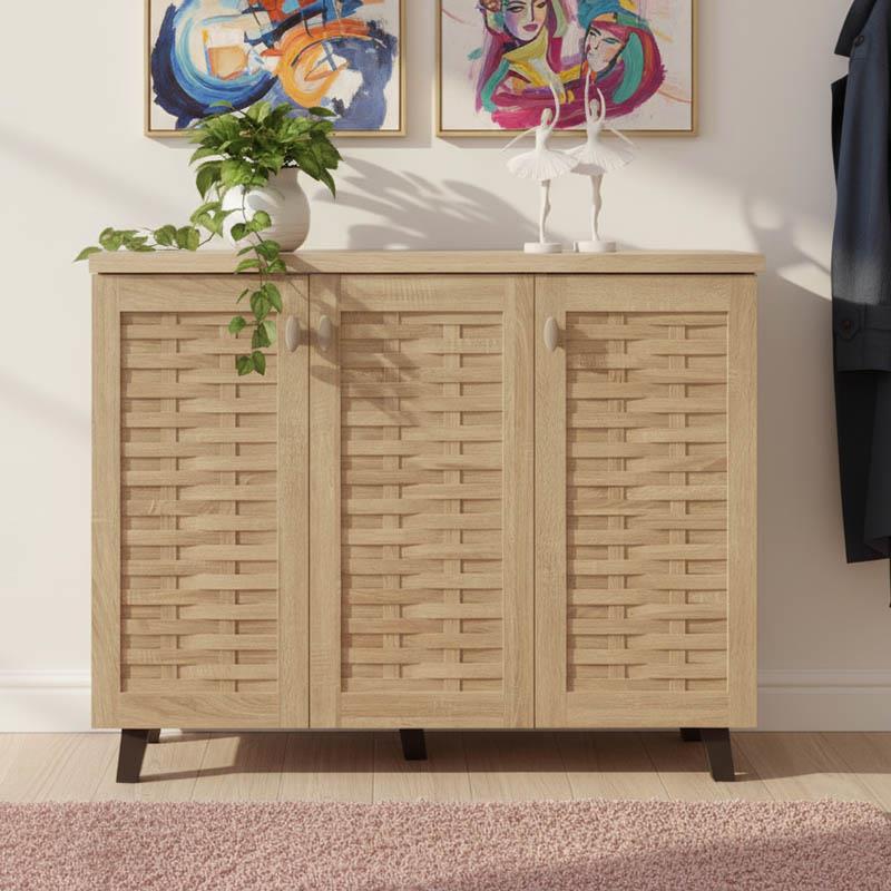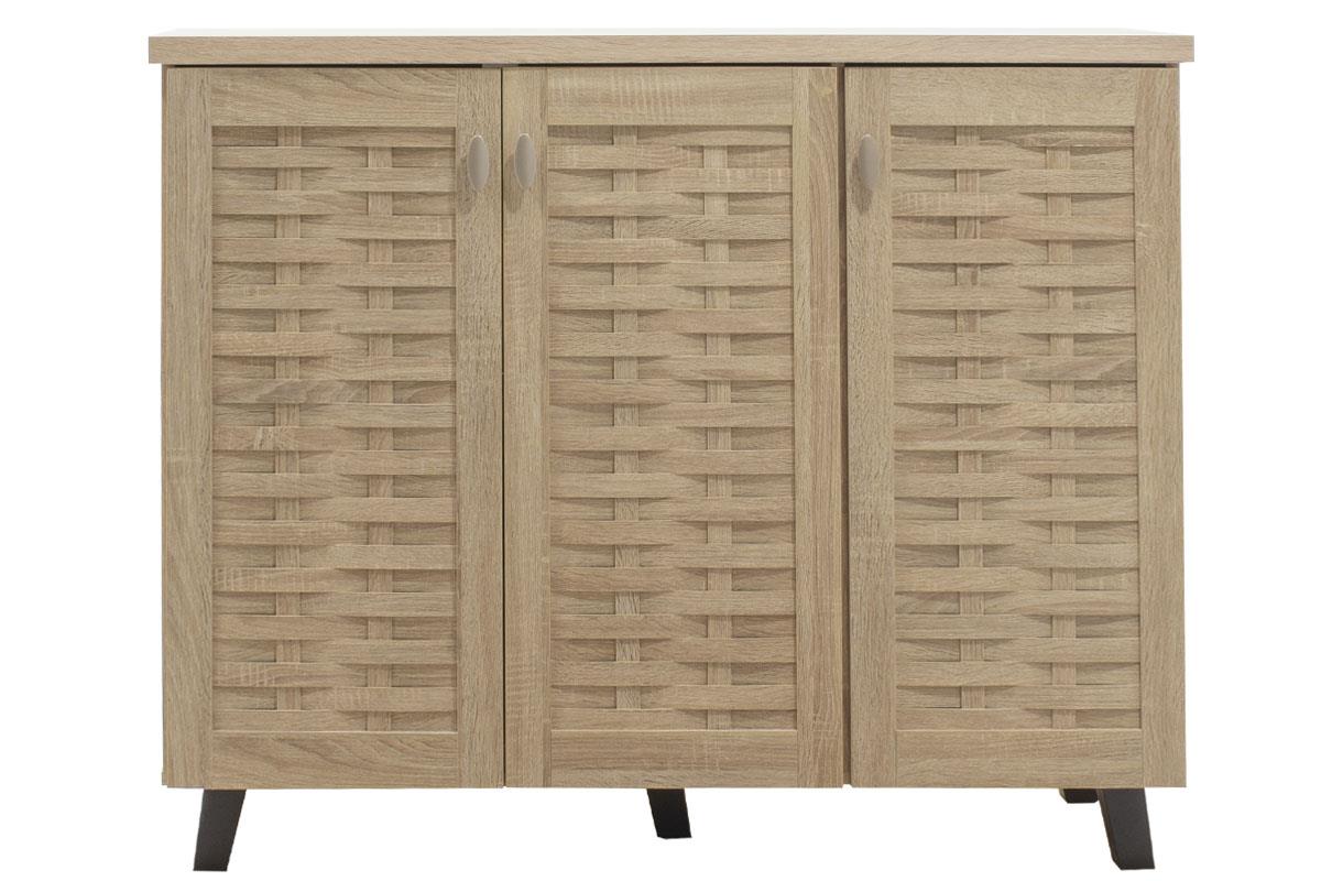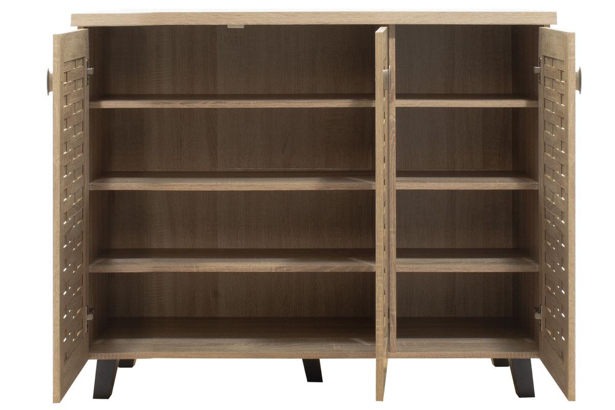 - Περιλαμβάνει τρεις πόρτες σε σχέδιο-μοτίβο πλέγματος, εσωτερικά φέρει έξι ράφια για 16 ζεύγη παπουτσιών, ρούχα ή αξεσουάρ.