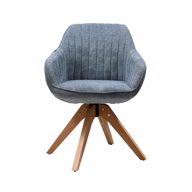 Περιστρεφόμενη Καρέκλα Τραπεζαρίας FL23A Fylliana Ραφ-Μπλέ με Ξύλινα πόδια 63x58x82εκ.