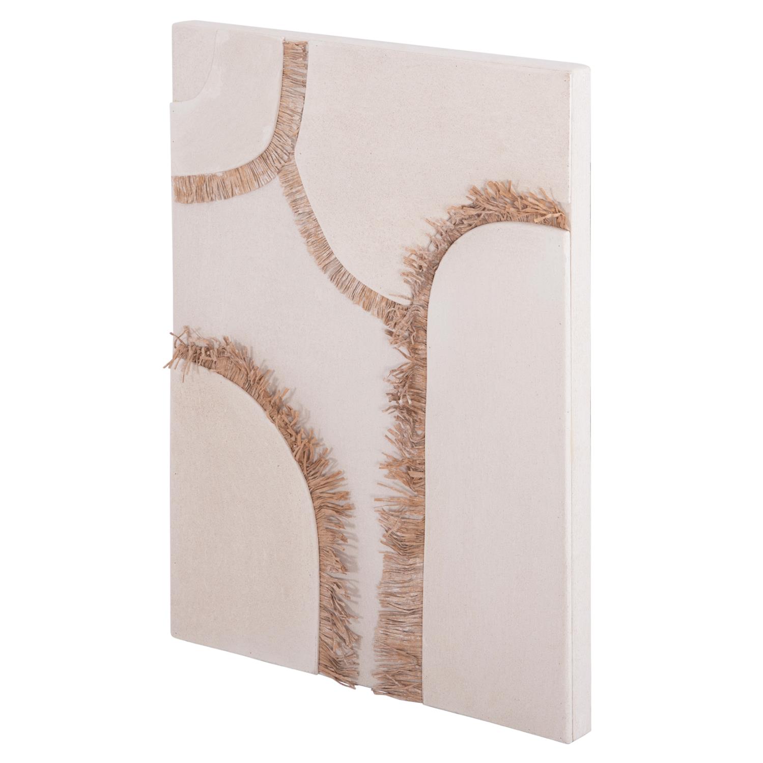 Διακοσμήστε τον χώρο σας με έναν όμορφο πίνακα σε μίνιμαλ υλοποίηση όπως ο Πίνακας C4532! Αυτός ο ορθογώνιος χειροποίητος πίνακας είναι κατασκευασμένος από MDF με υφή σαγρέ τσιμέντου, που αποτελεί την πιο σύγχρονη τάση στον τομέα του interior design, σε ΥΠΟΛΕΥΚΟ χρώμα, με αφηρημένο σχέδιο, «σκαλισμένο» με ανάγλυφο τρόπο στην επιφάνεια του πίνακα και διακοσμημένο με ακρυλικά «κρόσια» σε ΜΠΕΖ χρώμα. Ιδανικός για μια "νησιωτικού" στυλ διακόσμηση!