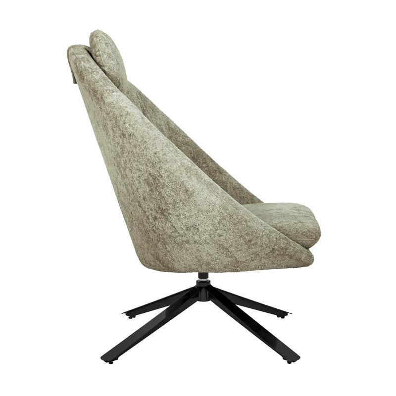 Δημιουργήστε έναν χώρο χαλάρωσης με στυλ, με αυτή την μοντέρνα περιστρεφόμενη πολυθρόνα Selene. Ο ιδιαίτερος σχεδιασμός της, με κυρτή πλάτη και ενσωματωμένο μαξιλάρι κεφαλής, την καθιστά ιδανική για ξεκούραση μετά από μια γεμάτη μέρα. Τα μεταλλικά πόδια προσφέρουν σταθερότητα και μοντέρνα αισθητική.