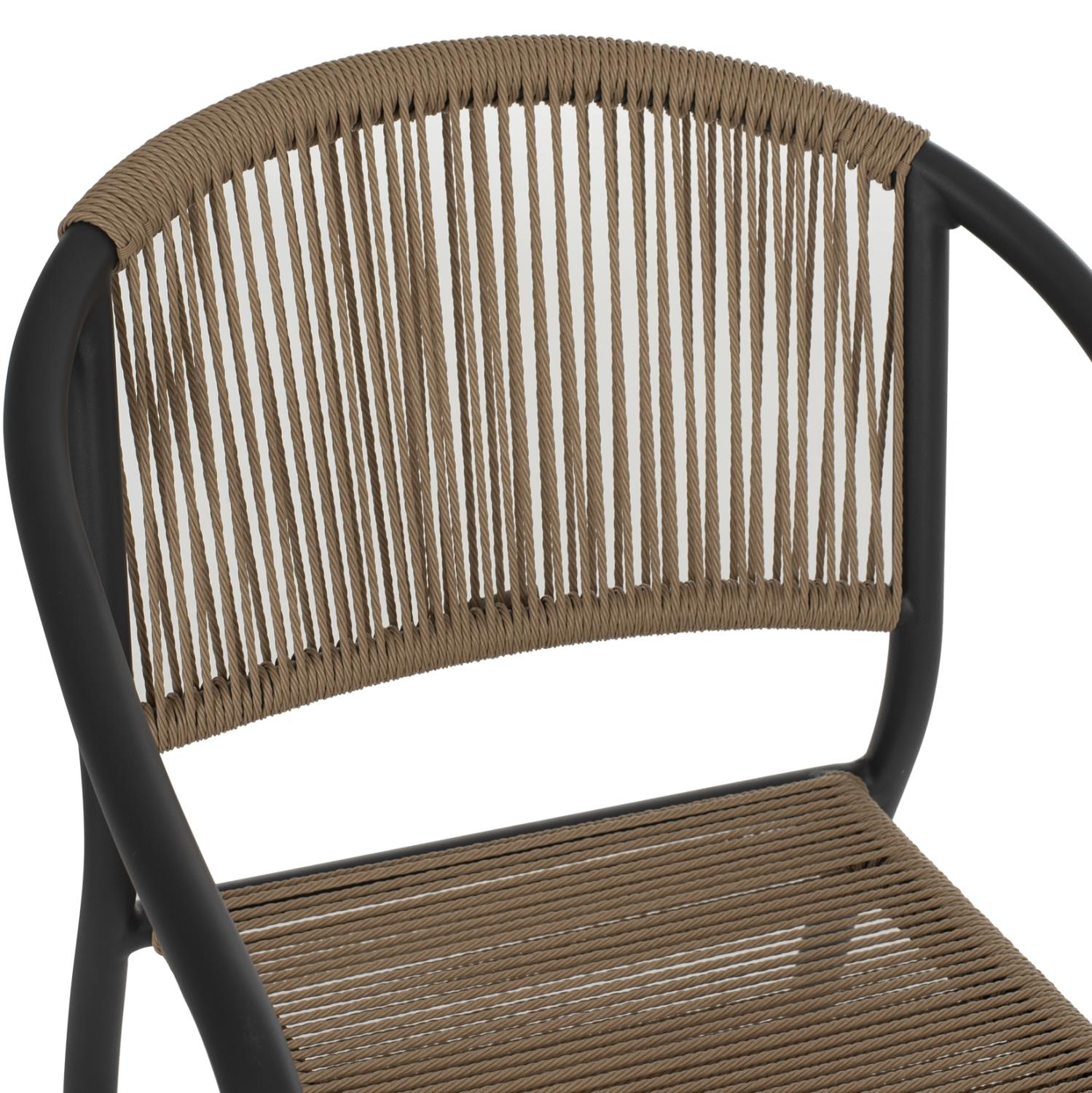 Η πολυθρόνα C5856.02 είναι επιβλητική! Μοντέρνα, άνετη και σταθερή! Η διχρωμία του ΑΝΘΡΑΚΙ σκελετού με την ΜΠΕΖ επένδυση από RATTAN-wicker σχοινί στο κάθισμα και την πλάτη είναι μοναδική. Η πλάτη είναι ελαφρώς στρογγυλεμένη ενώ το κάθισμα αντί για μαξιλάρι έχει πλέξη από σχοινί πολυεστερικού wicker-rattan. Η πολυθρόνα αυτή θα αναβαθμίσει αισθητικά τον χώρο που θα την τοποθετήσετε και θα τραβήξει τα βλέμματα χάρη στα υλικά κατασκευής της. Επίσης, το γεγονός ότι είναι στοιβαζόμενη την κάνει ιδιαιτέρως πρακτική αφού μπορείτε να την αποθηκεύσετε στον μικρότερο δυνατό χώρο.