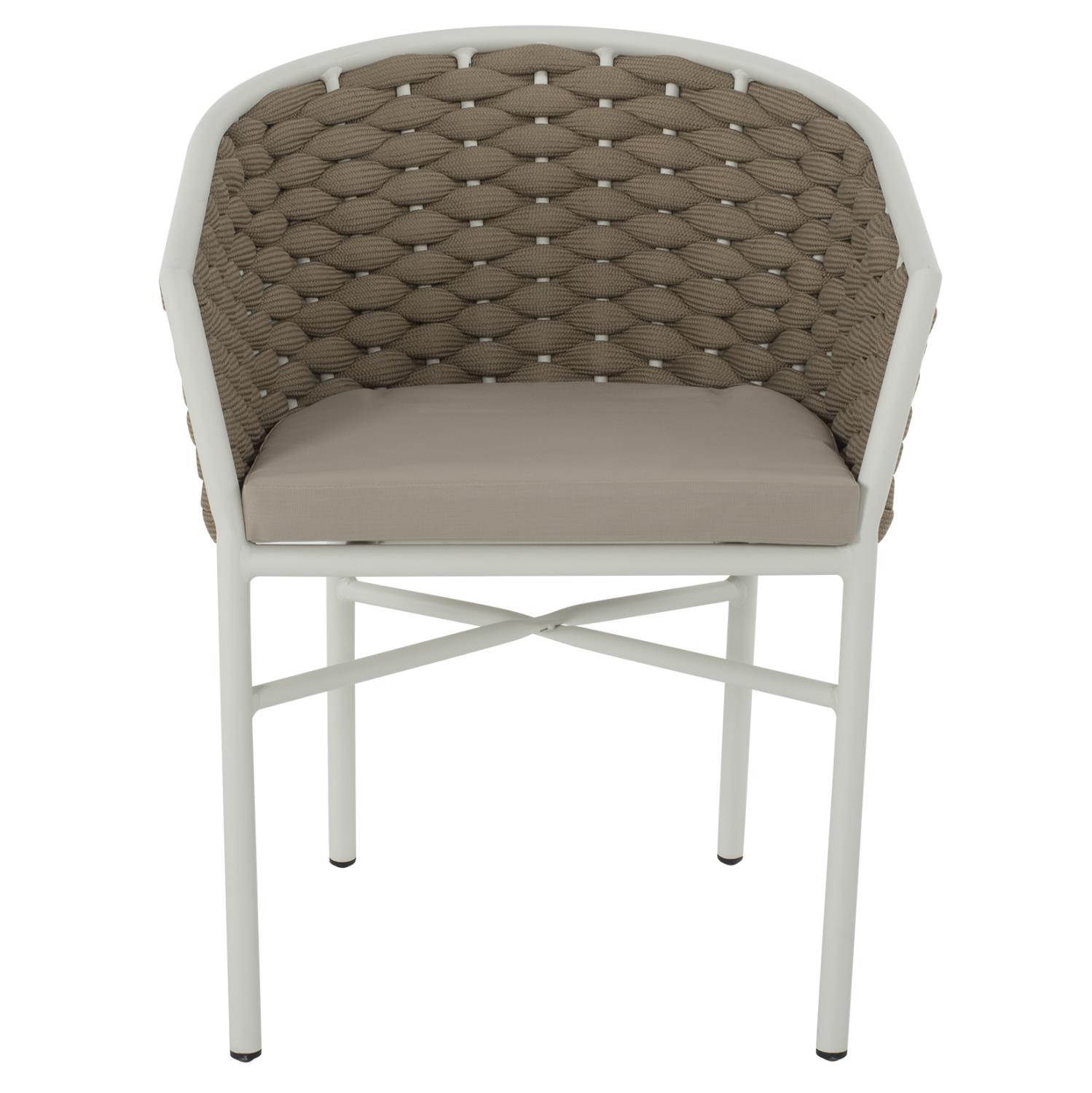 Η πολυθρόνα C5859.02 κυρίως για επαγγελματική χρήση, είναι όμορφη! Μοντέρνα, άνετη και σταθερή! Η διχρωμία του ΛΕΥΚΟΥ σκελετού με την ΜΠΕΖ επένδυση από αφρώδες σχοινί σε όλη την πλάτη είναι μοναδική. Η πλάτη με τα μπράτσα αποτελούν ένα ενιαίο ημικυκλικό κομμάτι με κάθετες βέργες που είναι πλεγμένες με το αφρώδες σχοινί και αγκαλιάζουν το σώμα, ενώ η κλίση στα μπράτσα είναι χαρακτηριστική. Το μαξιλάρι του καθίσματος είναι και αυτό σε μπεζ χρώμα και είναι άνετο. Η πολυθρόνα αυτή θα αναβαθμίσει αισθητικά τον χώρο που θα την τοποθετήσετε και θα τραβήξει τα βλέμματα χάρη στα υλικά κατασκευής της. Επίσης, το γεγονός ότι είναι στοιβαζόμενη την κάνει ιδιαιτέρως πρακτική αφού μπορείτε να την αποθηκεύσετε στον μικρότερο δυνατό χώρο.