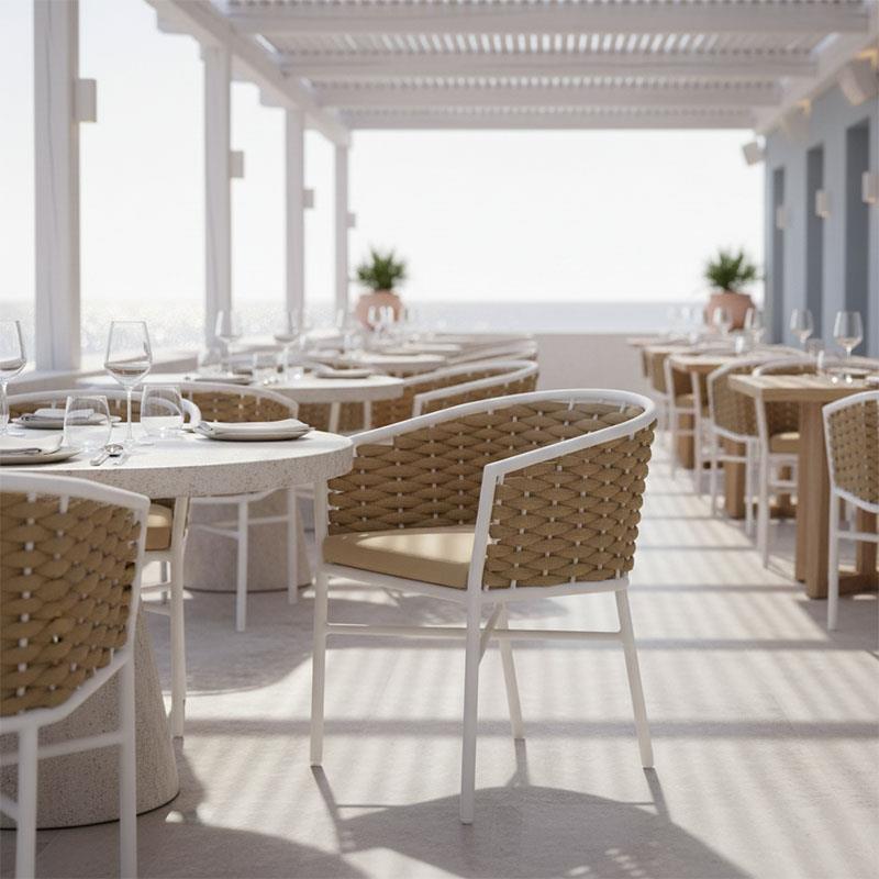 H πολυθρόνα εξωτερικού χώρου Noevo συνδυάζει αρμονικά την κομψότητα με τη λειτουργικότητα καθώς με τις απαλές καμπύλες της , προσφέρει μια αίσθηση ζεστασιάς και φιλοξενίας, ενώ ο μεταλλικός σκελετός της προσδίδει μια σύγχρονη κομψότητα και αισθητική.