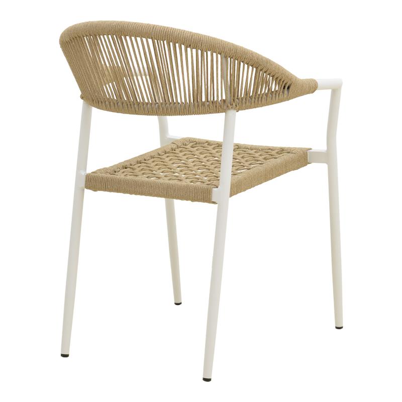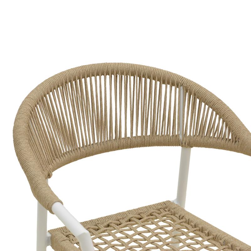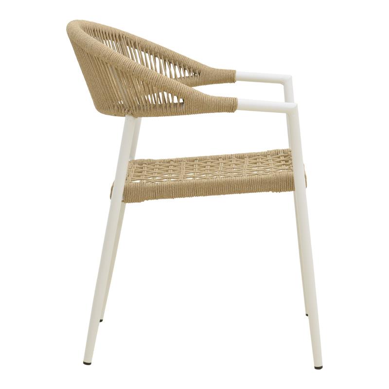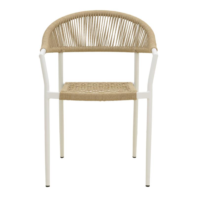 Καρέκλα Πολυθρόνα Ammos στοιβαζόμενη αλουμίνιο σε λευκή- pe σχοινί σε φυσική απόχρωση 57x61,5x82εκ