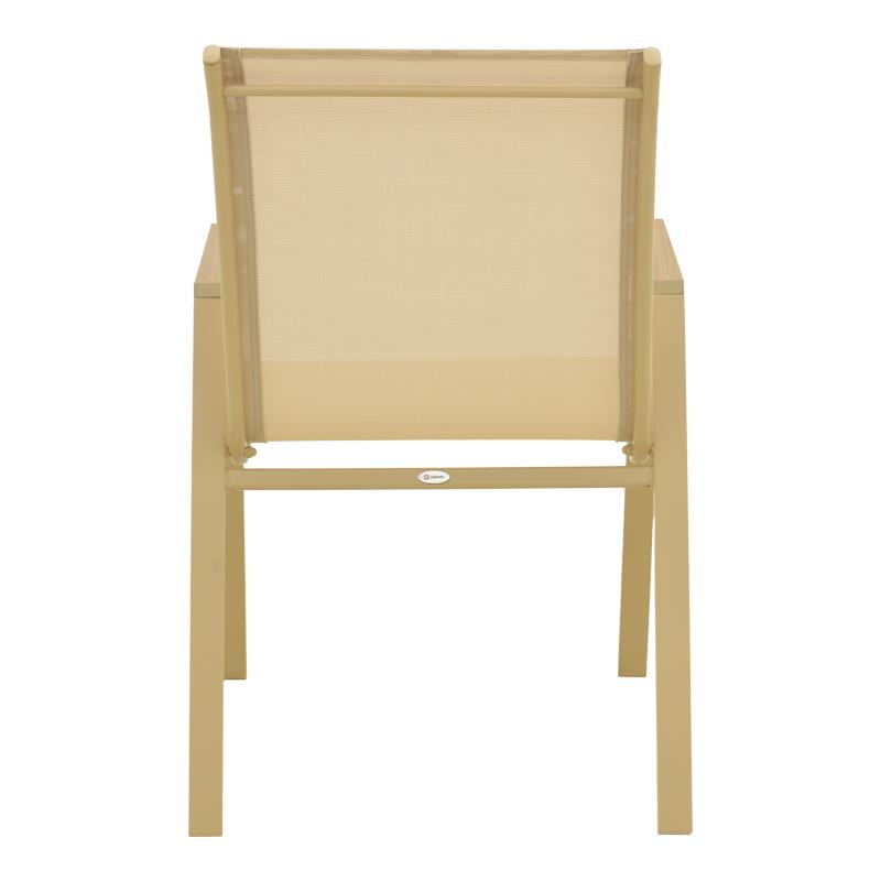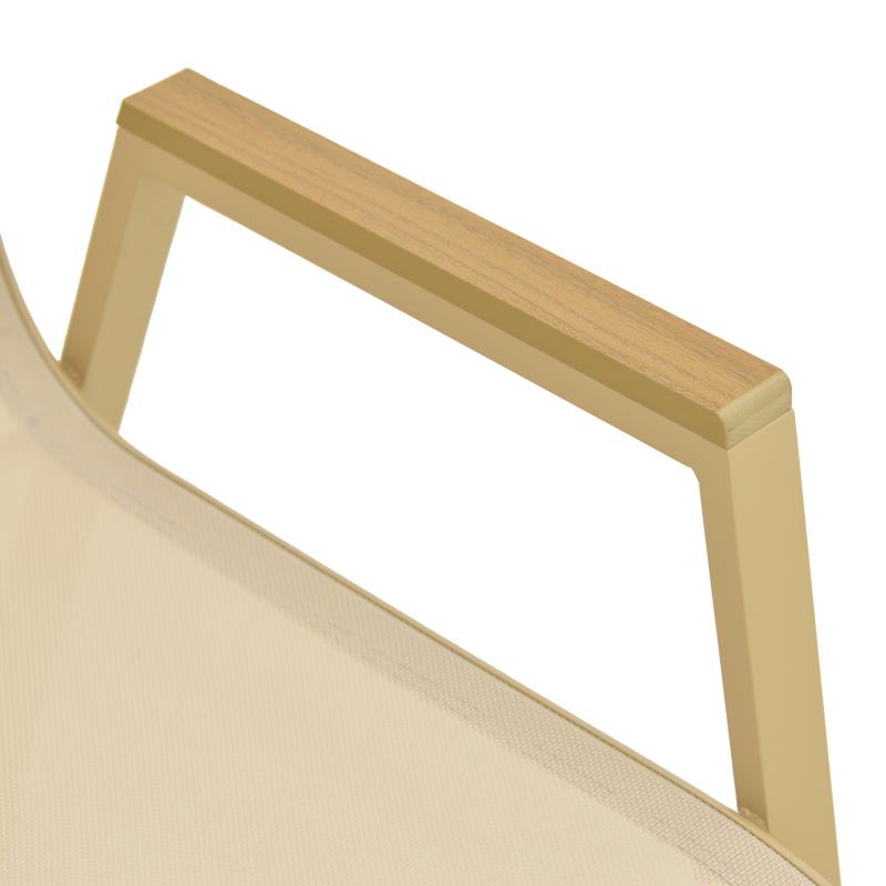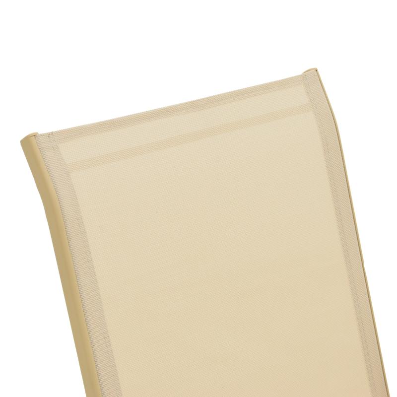 - Απίστευτη Άνεση: Η επιφάνεια από Textilene σε μπεζ χρώμα προσαρμόζεται στο σχήμα του σώματός σας, προσφέροντας εξαιρετική άνεση ακόμα και χωρίς μαξιλάρι. Είναι επίσης ένα υλικό που αναπνέει, οπότε σας κρατάει δροσερούς ακόμα και τις πιο ζεστές μέρες.