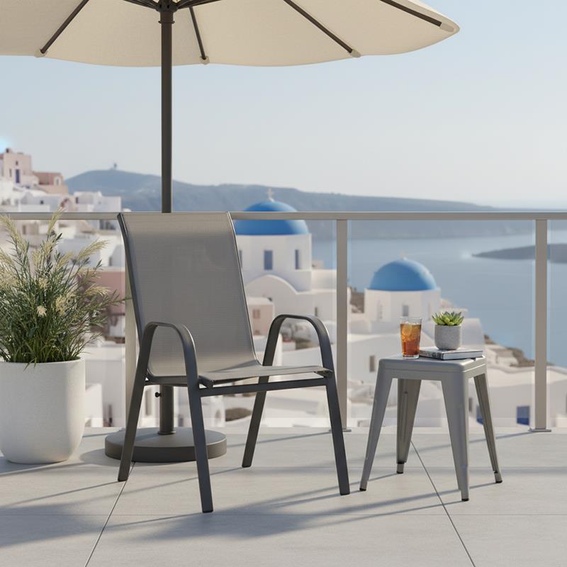 Πολυθρόνα Calan pakoworld στοιβαζόμενη μέταλλο ανθρακί-textilene ανθρακί 55x75x95εκ