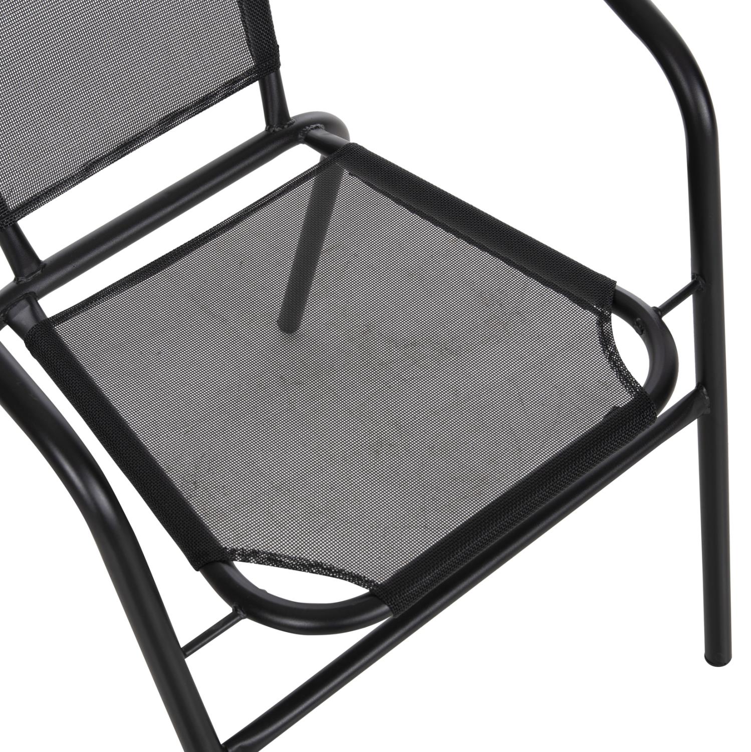 Το κάθισμα και η πλάτη είναι από textline (ή textilene) 1x1. Αυτό είναι ένα παχύ, ισχυρό και ανθεκτικό πολυεστερικό ύφασμα. Σημαίνει ότι είναι κατασκευασμένο από πολυεστερικά νήματα με PVC.