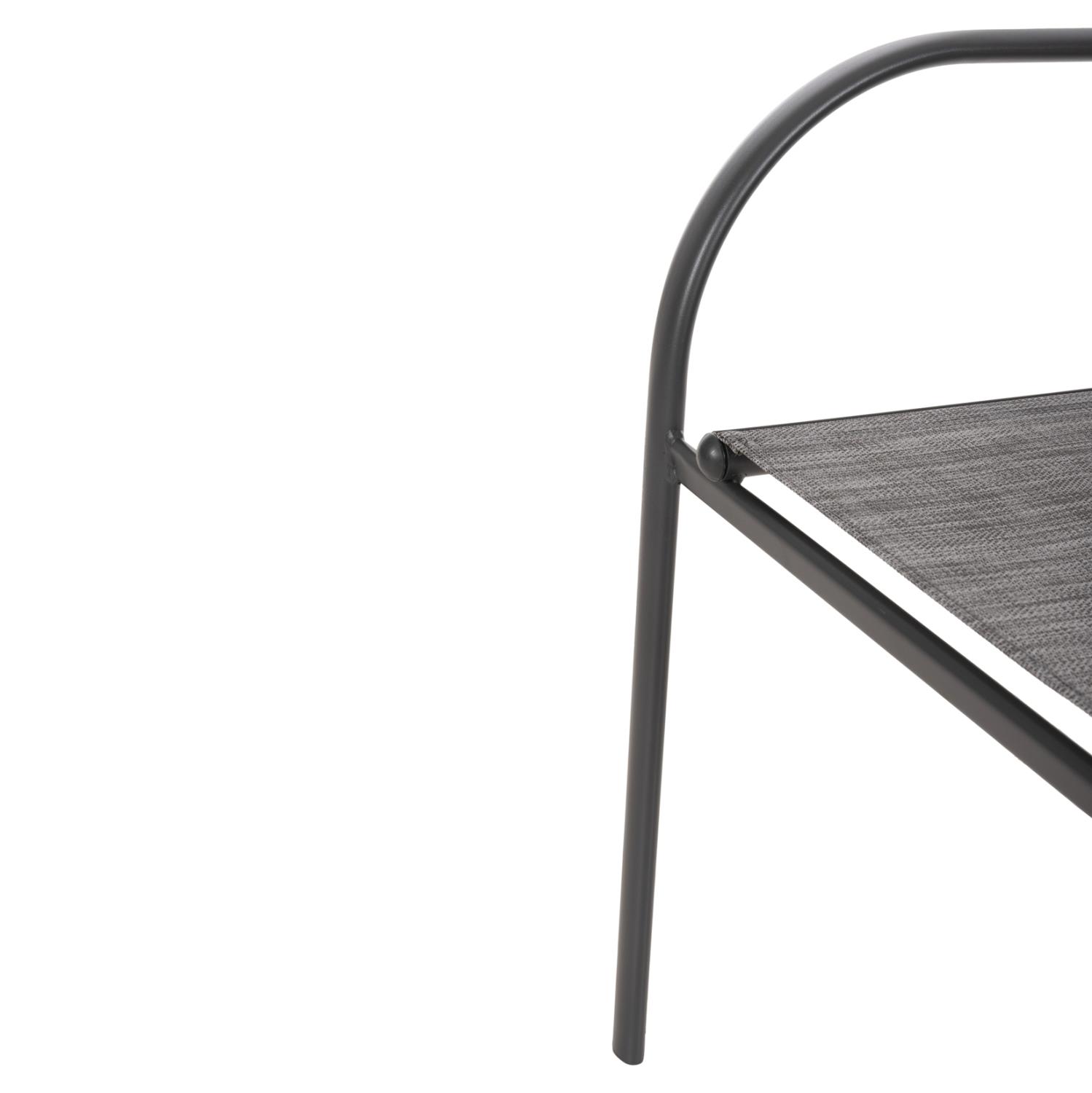 Το κάθισμα και η πλάτη είναι από textline (ή textilene) υψηλής ποιότητας 2x1. Αυτό είναι ένα παχύ, ισχυρό και ανθεκτικό πολυεστερικό ύφασμα. Σημαίνει ότι είναι κατασκευασμένο από πολυεστερικά νήματα με PVC.