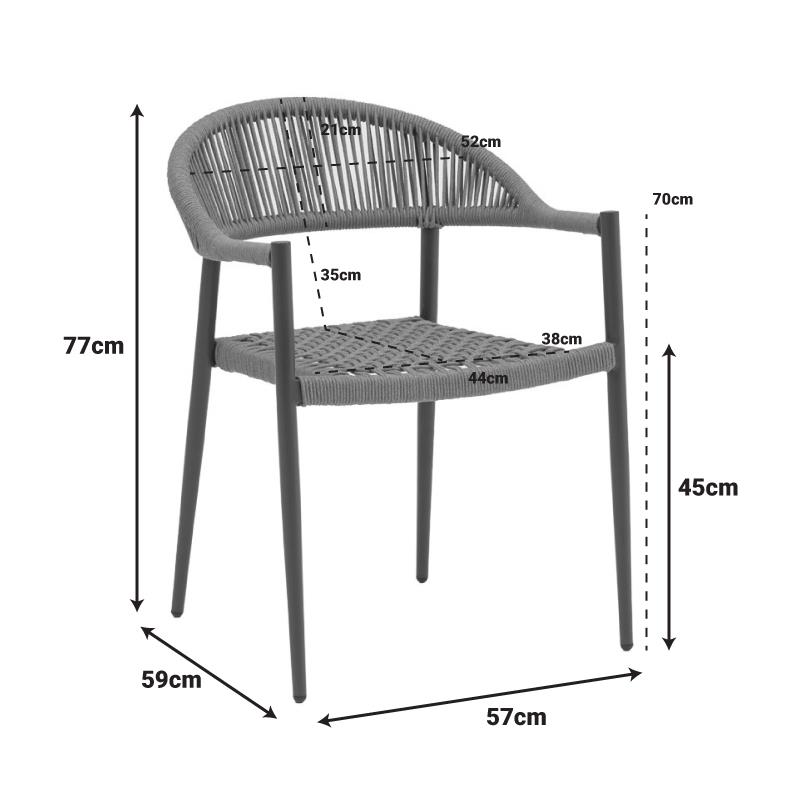 Καρέκλα - Πολυθρόνα Freiburg αλουμίνιο μαύρο-σχοινί φυσικό-κεραμιδί