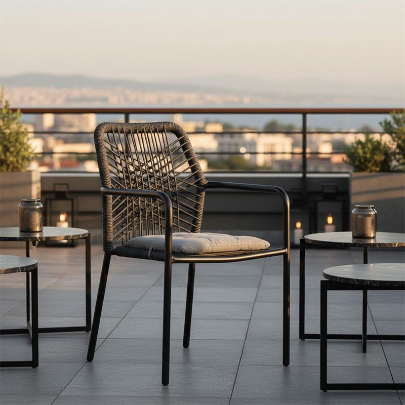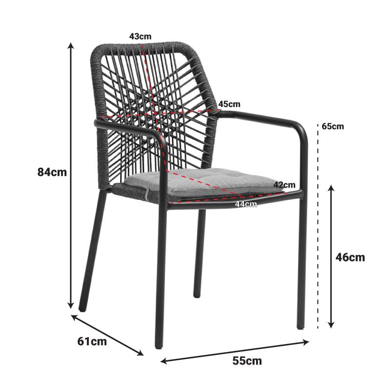 Καρέκλα – Πολυθρόνα Kherson αλουμίνιο σχοινί ανθρακί-μαξιλάρι γκρι