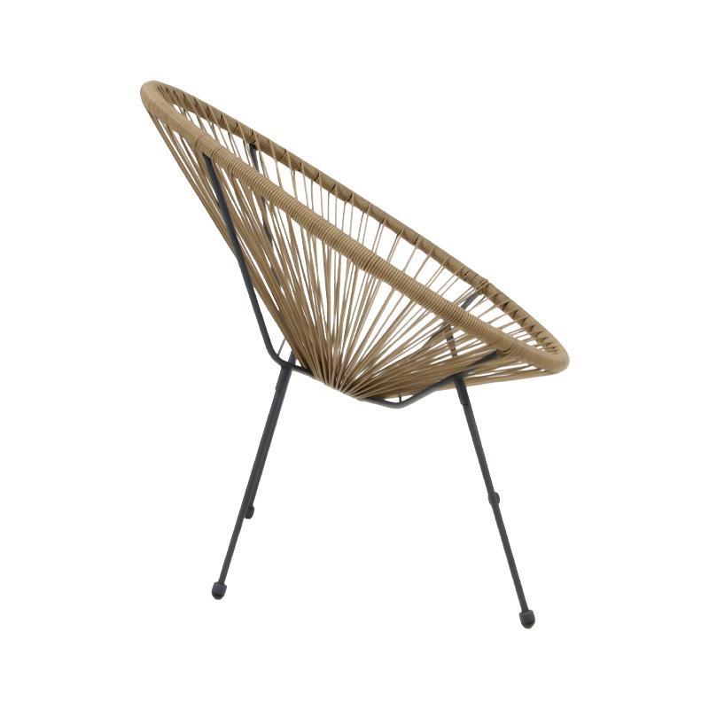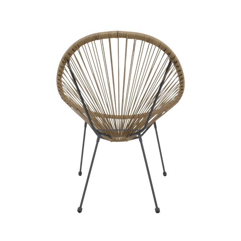 Συντήρηση: Η πολυθρόνα απαιτεί ελάχιστη συντήρηση. Το συνθετικό rattan καθαρίζεται εύκολα με ένα υγρό πανί, ενώ τα μεταλλικά πόδια χρειάζονται απλή καθαριότητα για να διατηρούν την εμφάνισή τους.