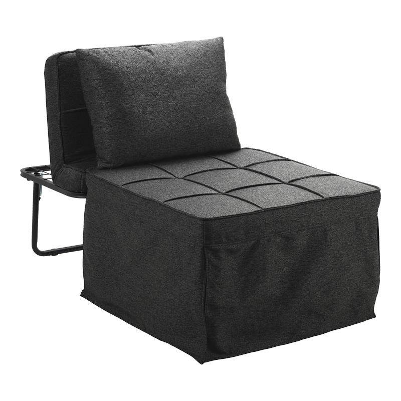 Πολυθρόνα - κρεβάτι Grejio ύφασμα σε ανθρακί απόχρωση κα πόδι μαύρο μέταλλο 70x70x45εκ
