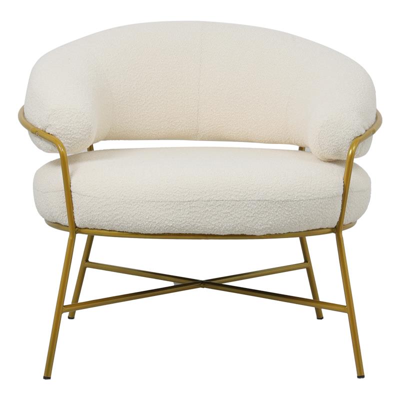 Πολυθρόνα Malu μπουκλέ κρεμ-πόδι χρυσό μέταλλο 84x79x76εκ