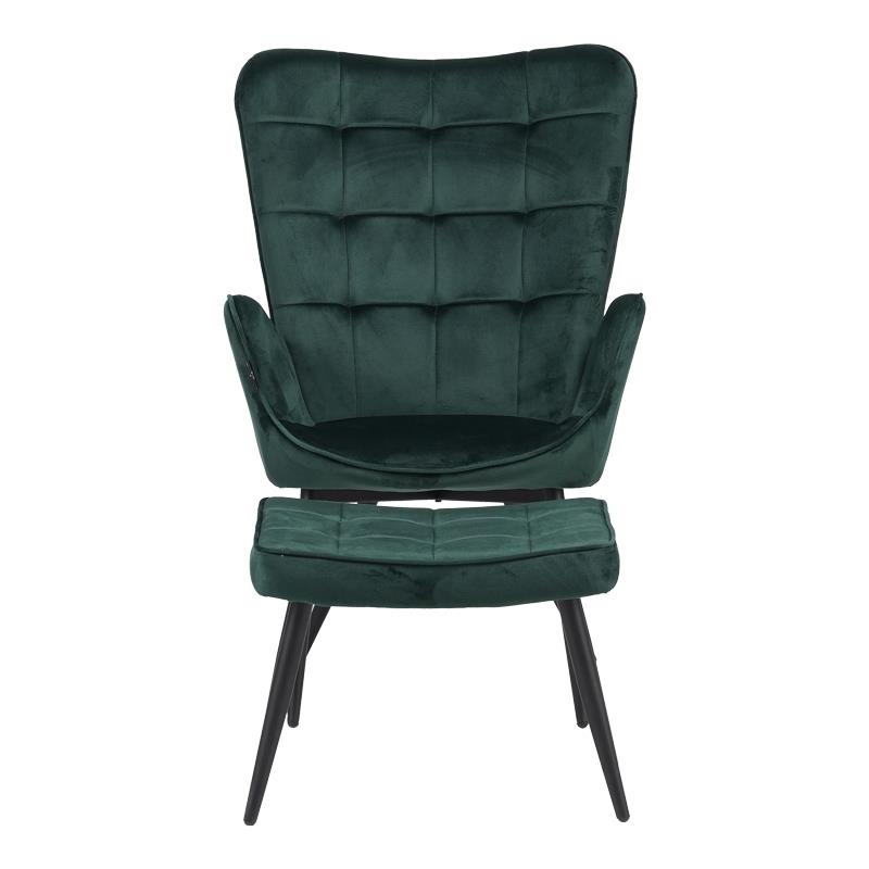 Πολυθρόνα με υποπόδιο Dorita βελούδο κυπαρισσί-πόδι μαύρο μέταλλο 68.5x76x103εκ