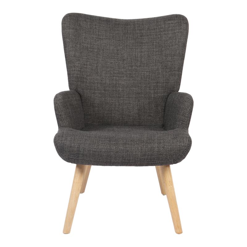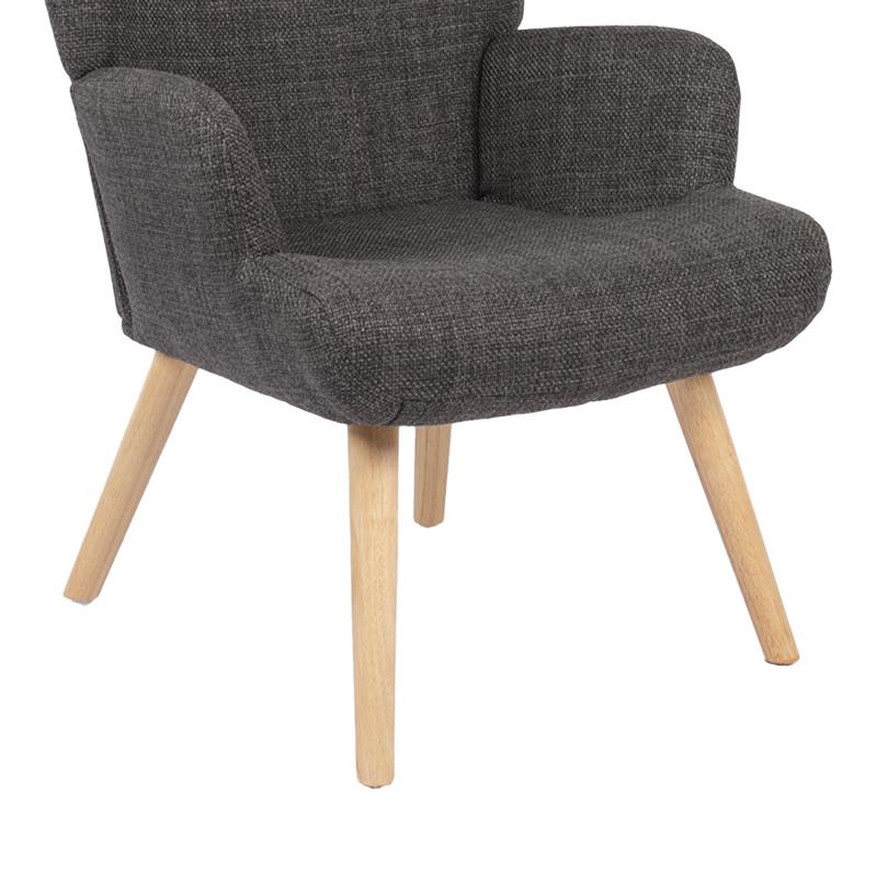 Πολυθρόνα-μπερζέρα Gerlina ανθρακί ύφασμα με πόδι σε φυσική απόχρωση 71x64x94εκ