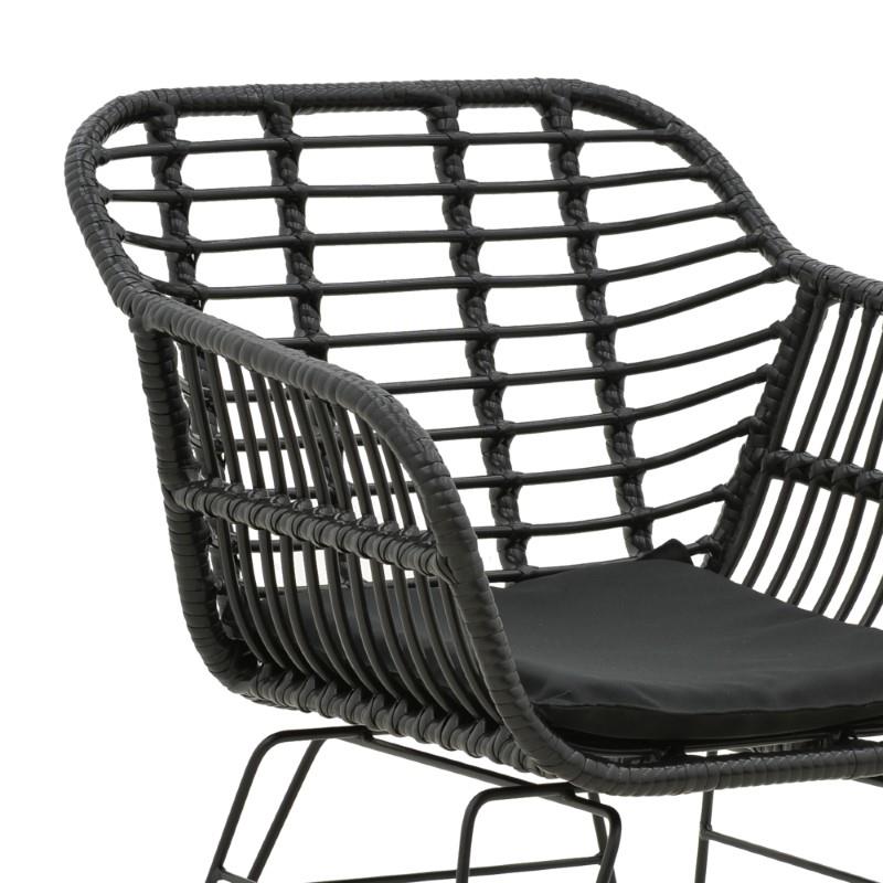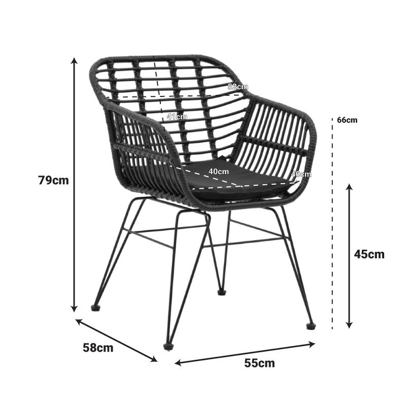 - Κυρίως επιφάνεια καρέκλας από PE rattan. Το PE rattan είναι ένα είδος οικολογικού συνθετικού rattan, ανακυκλώσιμο και με μεγαλύτερη ανθεκτικότητα σε σχέση με τα άλλα είδη.