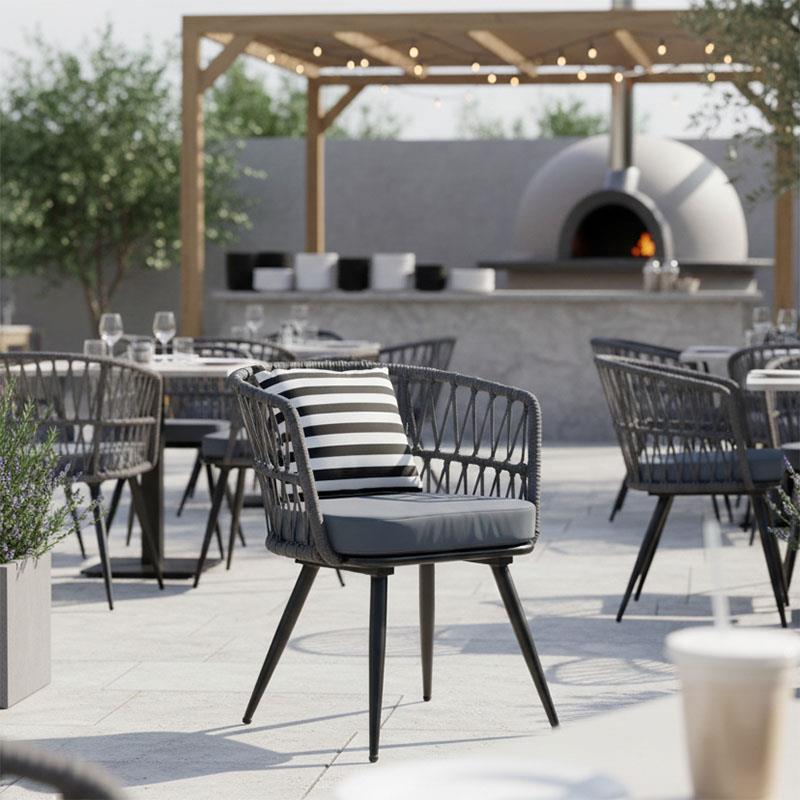 Καρέκλα - Πολυθρόνα Naoki μέταλλο μαύρο-pe γκρι-μαξιλάρι ασπρόμαυρο