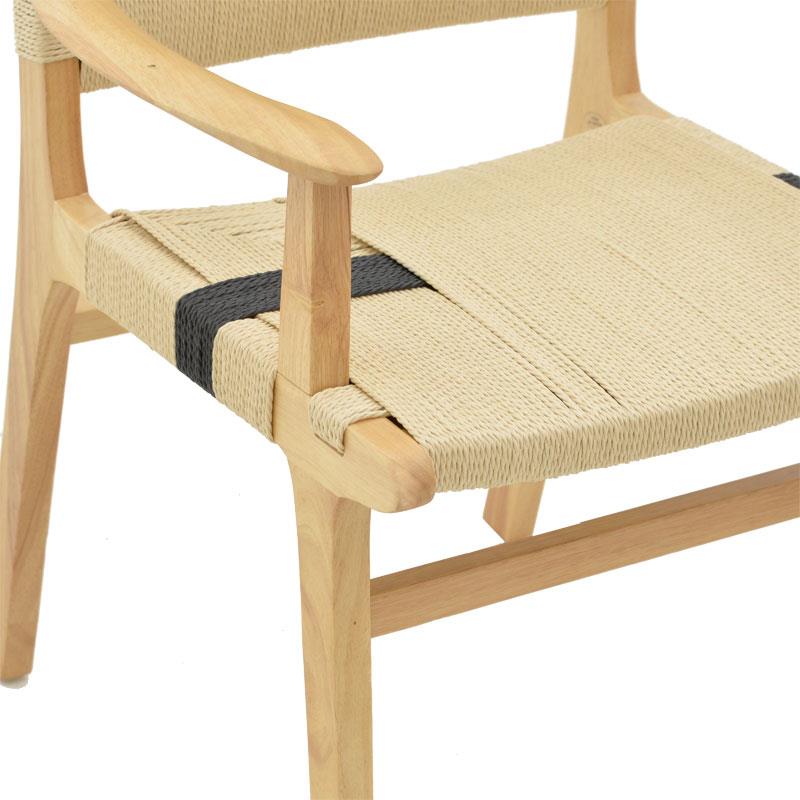 Πολυθρόνα Olivier ξύλο οξιάς φυσικό μαύρο-έδρα φυσικό σχοινί 62x60x85εκ