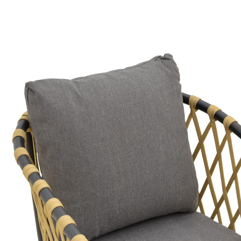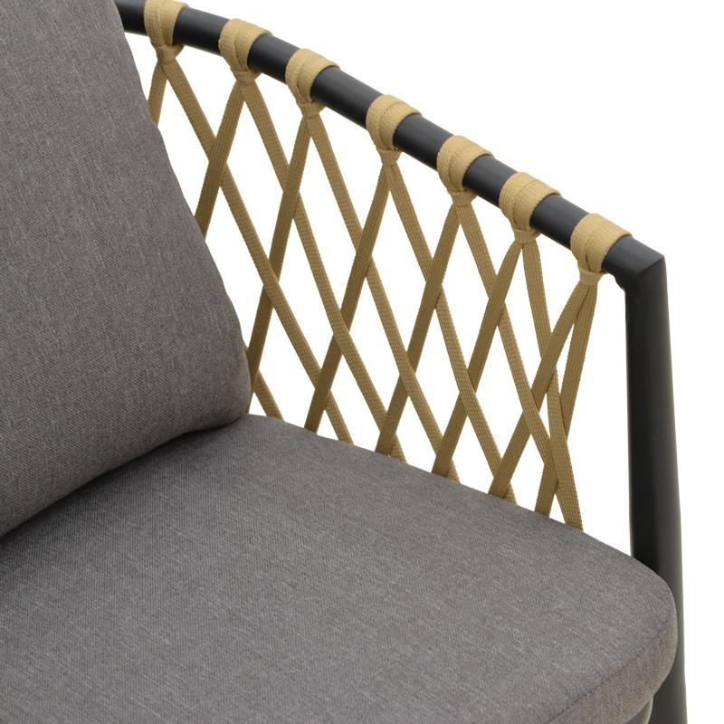 Ανανεώστε τον χώρο σας με την κομψή πολυθρόνα Peluxe, συνδυάζοντας σύγχρονο design και εξαιρετική άνεση. Με ανθεκτικό σκελετό αλουμινίου σε ανθρακί και ντύσιμο με σχοινί σε φυσική απόχρωση , προσφέρει μοναδικό χαρακτήρα και στιβαρότητα.